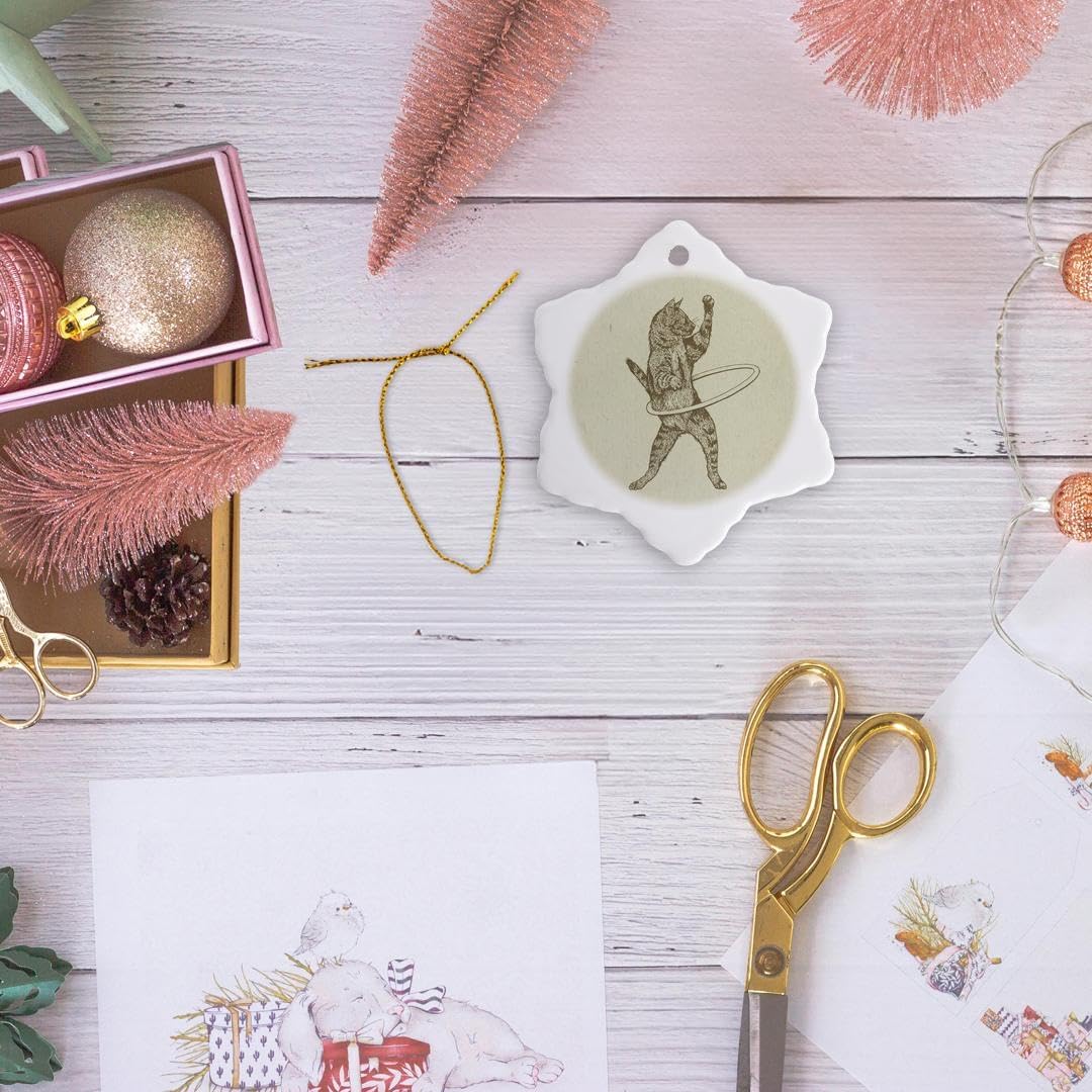 Hula Kitty Snowflake Ornament - 3-Inch Porcelain Cat Hooping Design