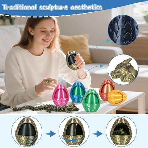 - ¡¼Flexible Articulated Dragon¡½ The design of the Dragon egg and the 3D printed Dragon are incredibly realistic, providing an authentic experience for adults alike. The head, torso, limbs, and feet of the 3D printed Dragons are all connected by sturdy hinges, allowing for flexible positioning and posing.offering tactile satisfaction and endless posing possibilities.