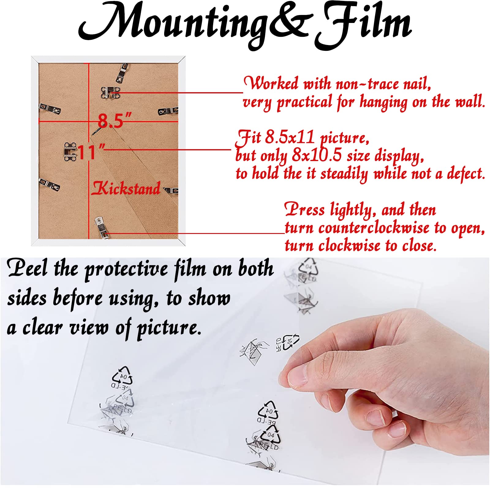 - MULTIPLE FRAMES: There are 5 packs of picture frames in a same size. The white frame works for photo canvas certificate poster size 8.5x11 inches.