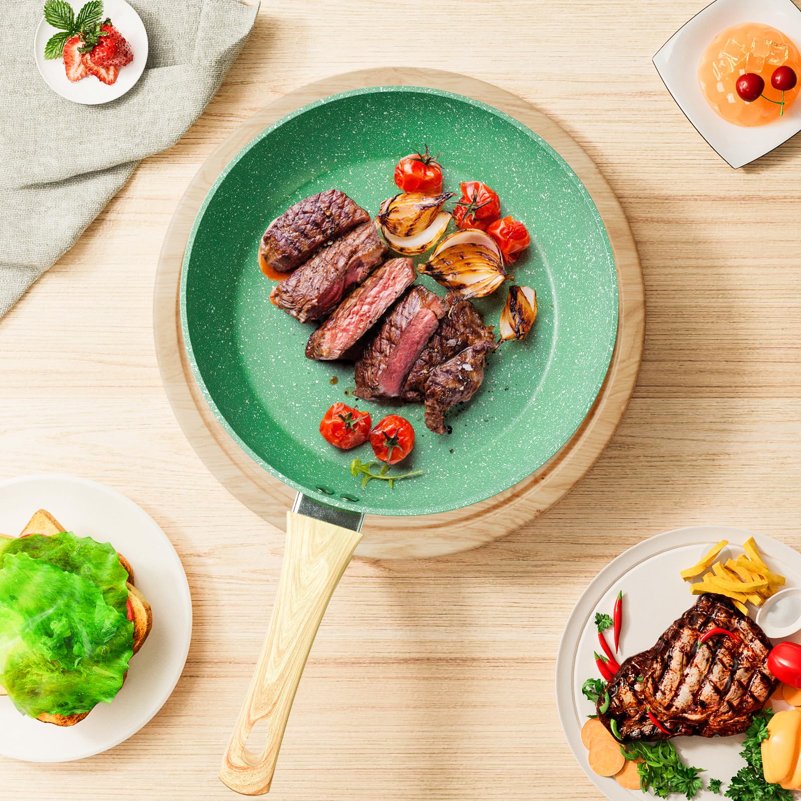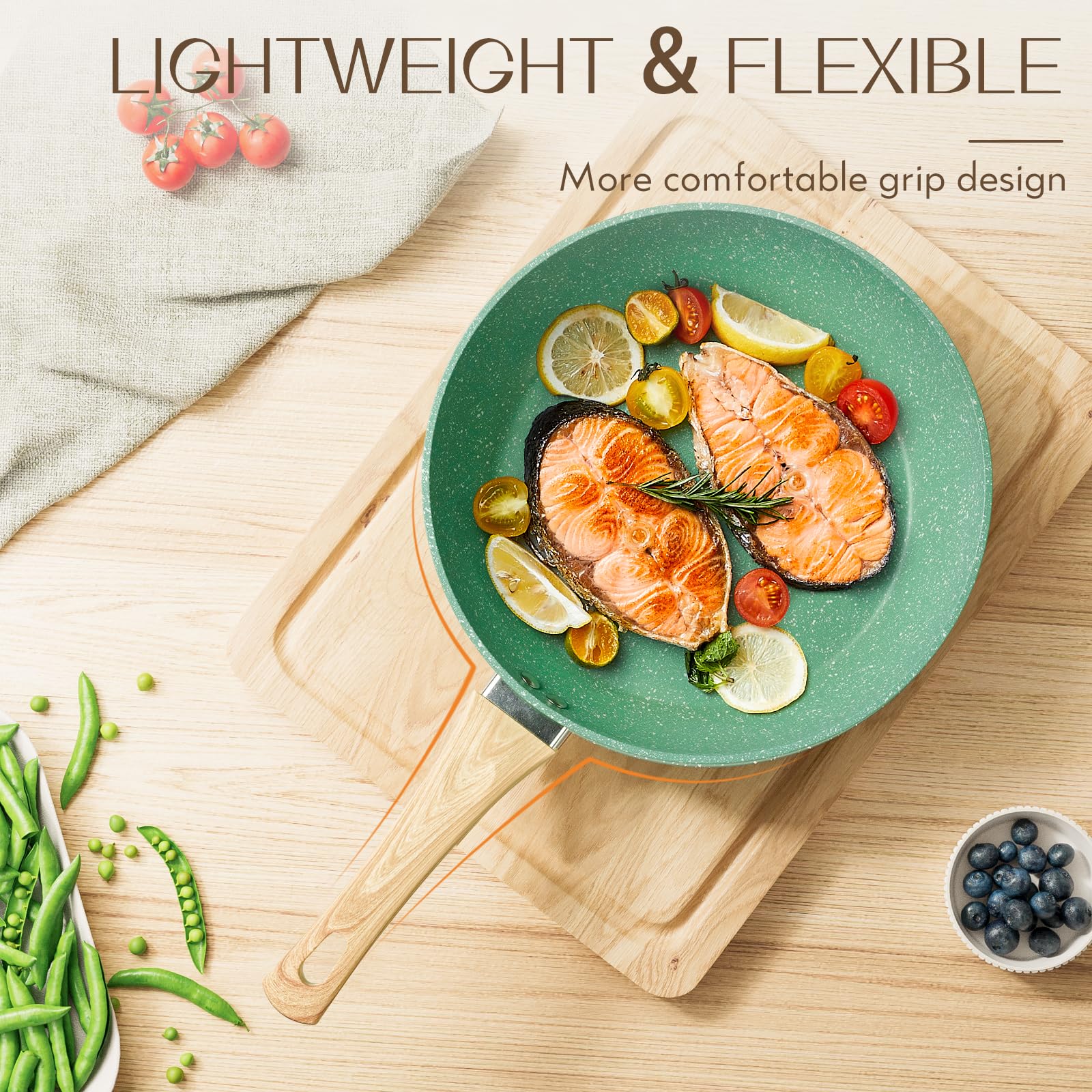 - [SAFETY & HEALTH] Innerwell's striking green speckled textured granite non-stick coating is non-toxic and free from harmful substances such as PFOA, PFOS, PTFE, CADMIUM etc. Ensuring that your everyday cooking is always safer and healthier.