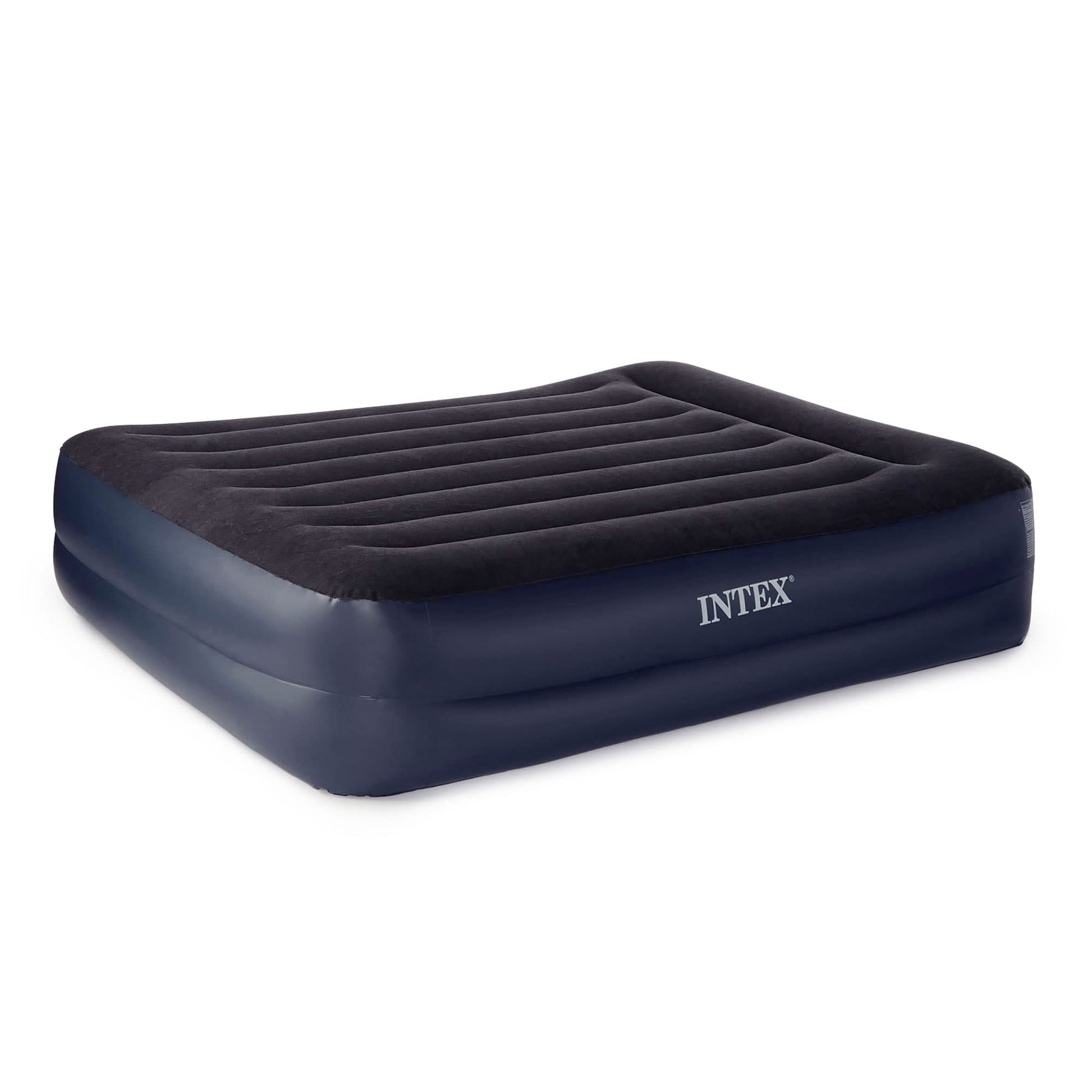 Details: Part of the new dura-beam standard series of airbeds, the pillow rest raised airbed now features an interior made with Intex innovative fiber-tech construction which is comprised of thousands of high-strength polyester fibers that provide enhanced comfort, stability and support. With its luxuriously soft, flocked top, this queen airbed is an amazing solution for overnight guests. The built-in electric pump plugs right into your standard wall outlet and inflates the bed in about 3 minutes so there is no need to rummage through the garage for your old electric pump or fuss with tiring hand or foot pumps. Plus, you don't have to break out extra pillows since it features a built-in pillow rest as well.