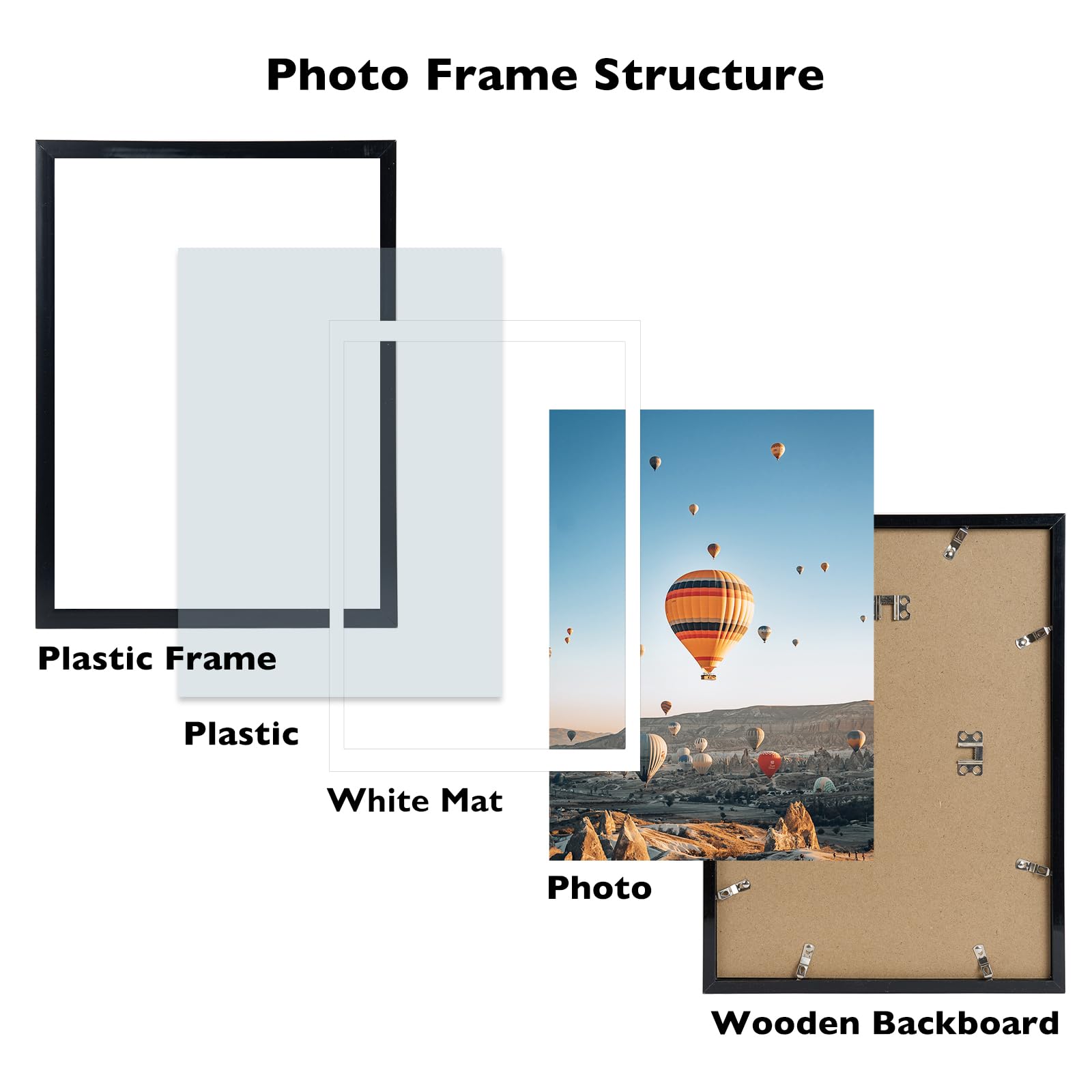 - SAFE MATERIAL: The photo frame is made of plastic, lightweight and easy to use, using safer HD plastic plexiglass instead of glass can prevent from breaking by accident. This is a safe option for those with children as you don't have to worry about injuries due to accidental glass breakage. Please remove the double-sided protective film from the plastic plexiglass before use to allow for clearer photo display.