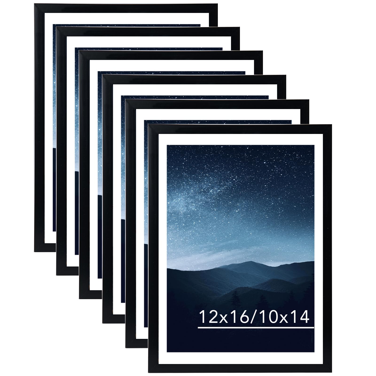 JCJMY 12x16 Picture Frame Set of 6 Black with 10x14 Mat for 30 x 40cm Diamond Art Painting, Display Photo 10x14 with Mat or 12 x 16 Without Mat, Wall Hanging Large Frame, 6 Pack, Black