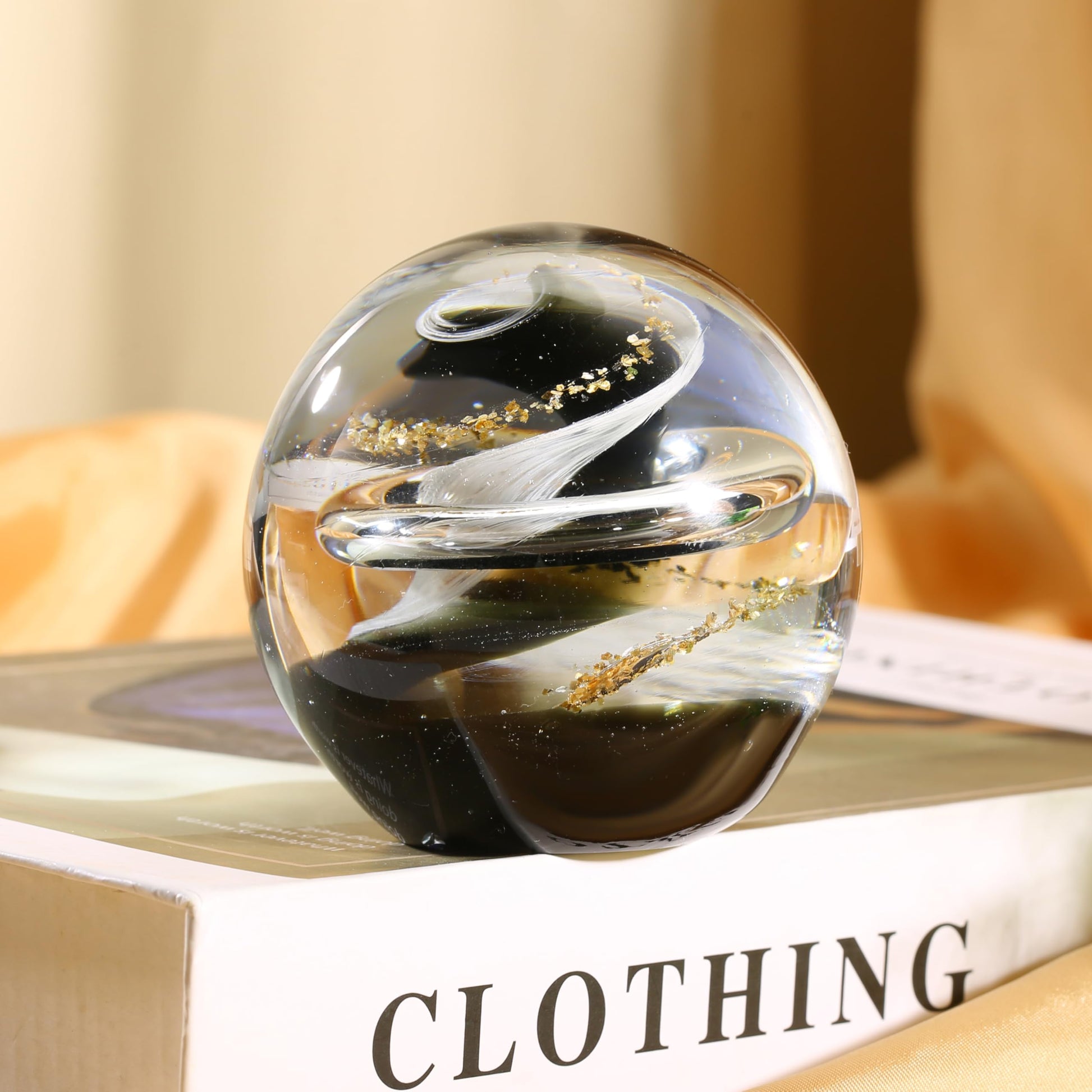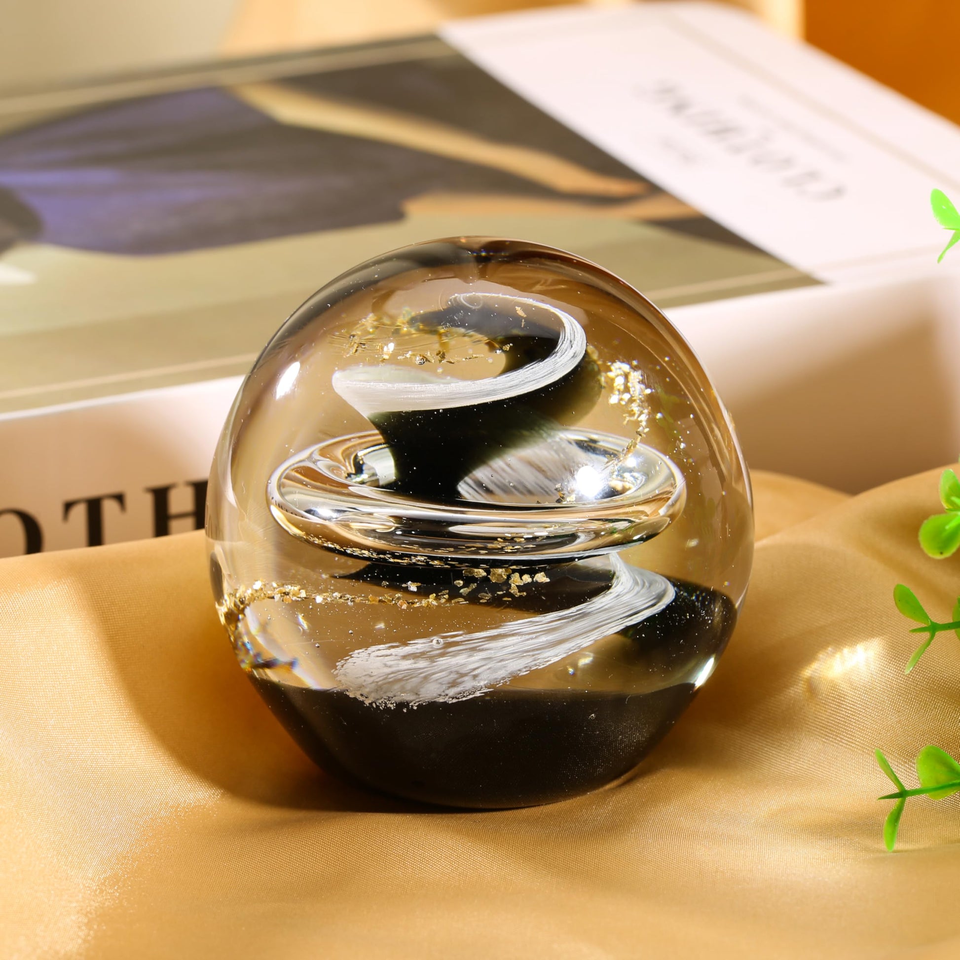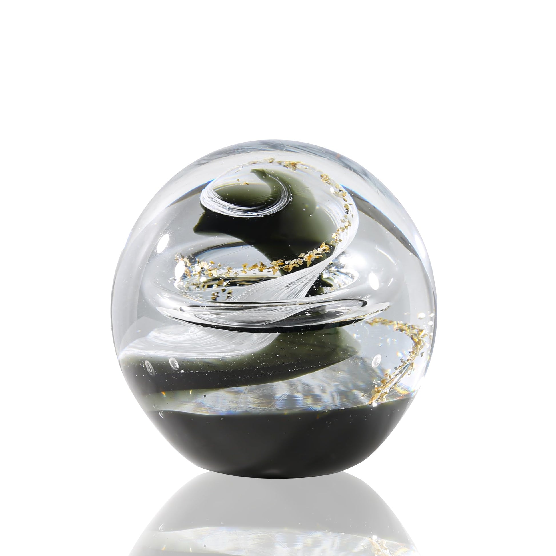 JFTOSALE 3.15in Abstract Galaxy Glass Ball Paperweight Blown Glass Art Modern Black and White Decorative Accent for Office, Shelf, and Table Top