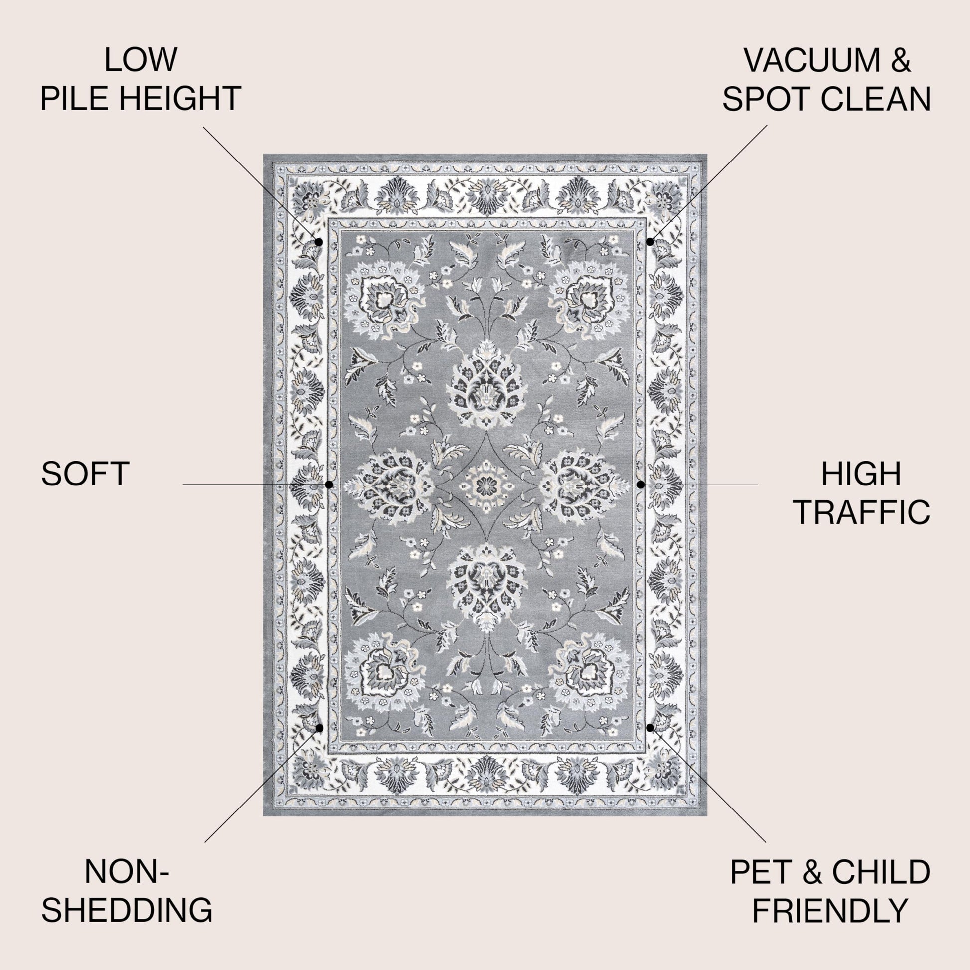 - PET-FRIENDLY AND DURABLE: Durable for high-traffic areas, soft and comfortable area rug perfect for families with kids; Low-pile synthetic rug fibers won’t trap dirt and debris, so they’re pet-friendly and easy to clean