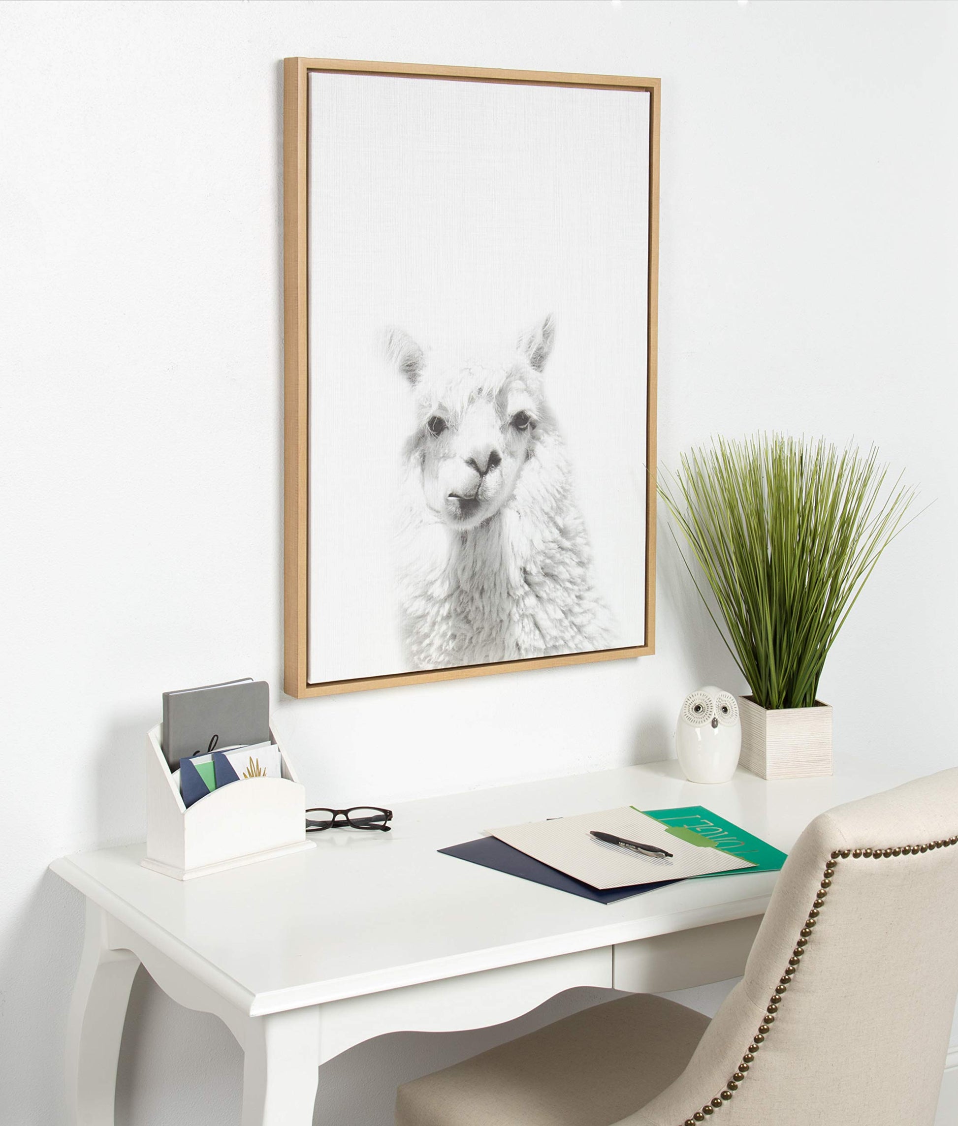 Kate and Laurel Sylvie Alpaca Animal Print Black and White Portrait Framed Canvas Wall Art by Simon Te Tai, 23x33 Natural
