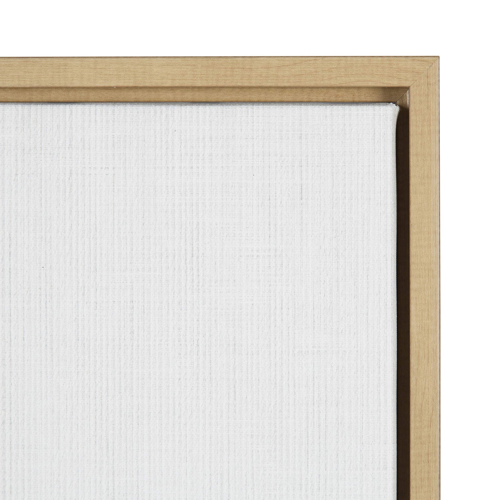 - The frame is a lightweight material with a light natural wood-grain look. The framed canvas display dimensions are 33 inches high by 23 inches across by 1.6 inches deep