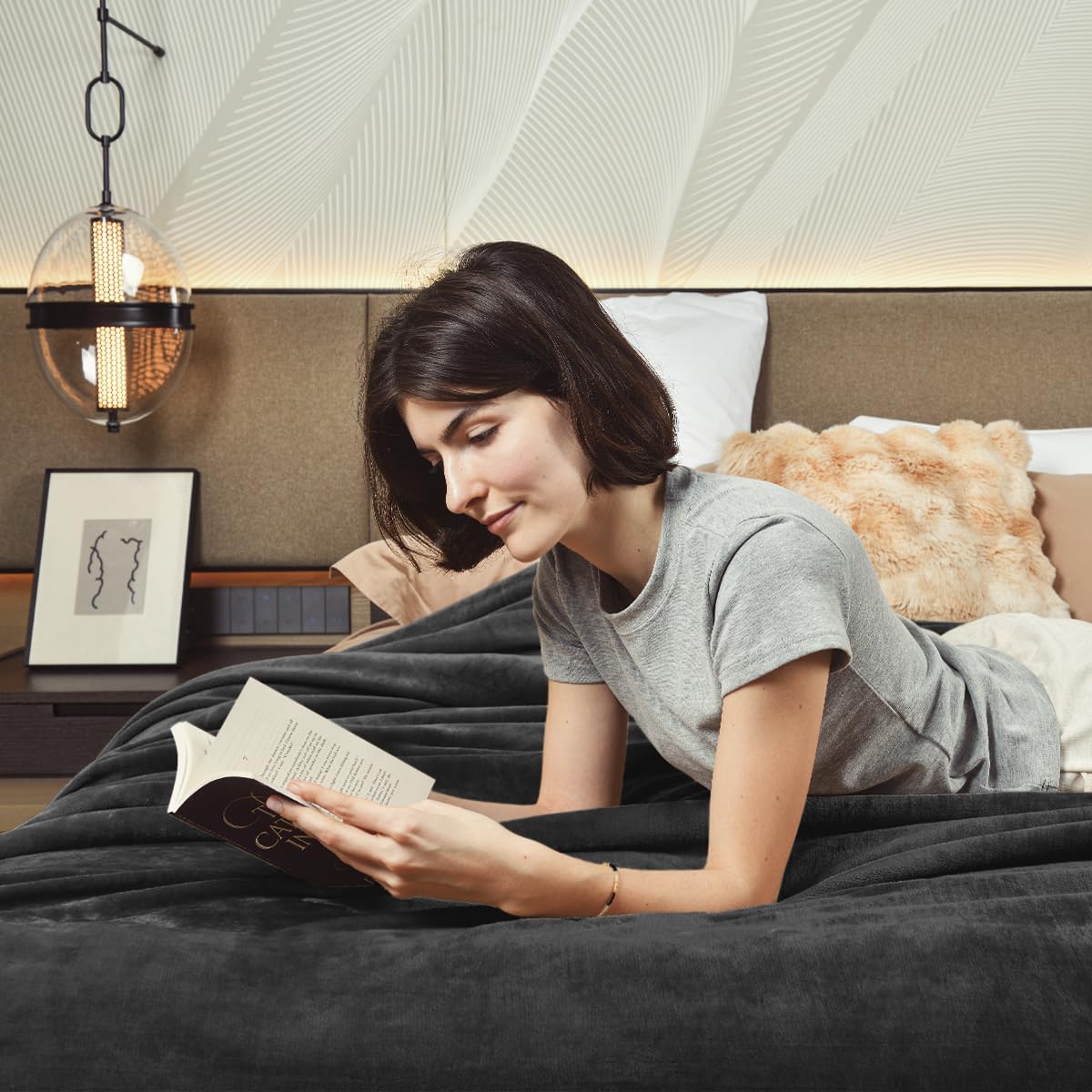 KAWAHOME Sherpa Fleece King Size Blanket for Bed - Extra Warm and Heavy Thick Blankets for Winter, Super Soft 500GSM Plush Blanket, 108" X 90" Dark Grey