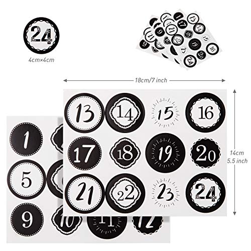 KESOTO 2 Pack Advent Calendar Number Stickers 1-24 Christmas Calendar Stickers for Crafting Christmas DIY Labels, Black and White