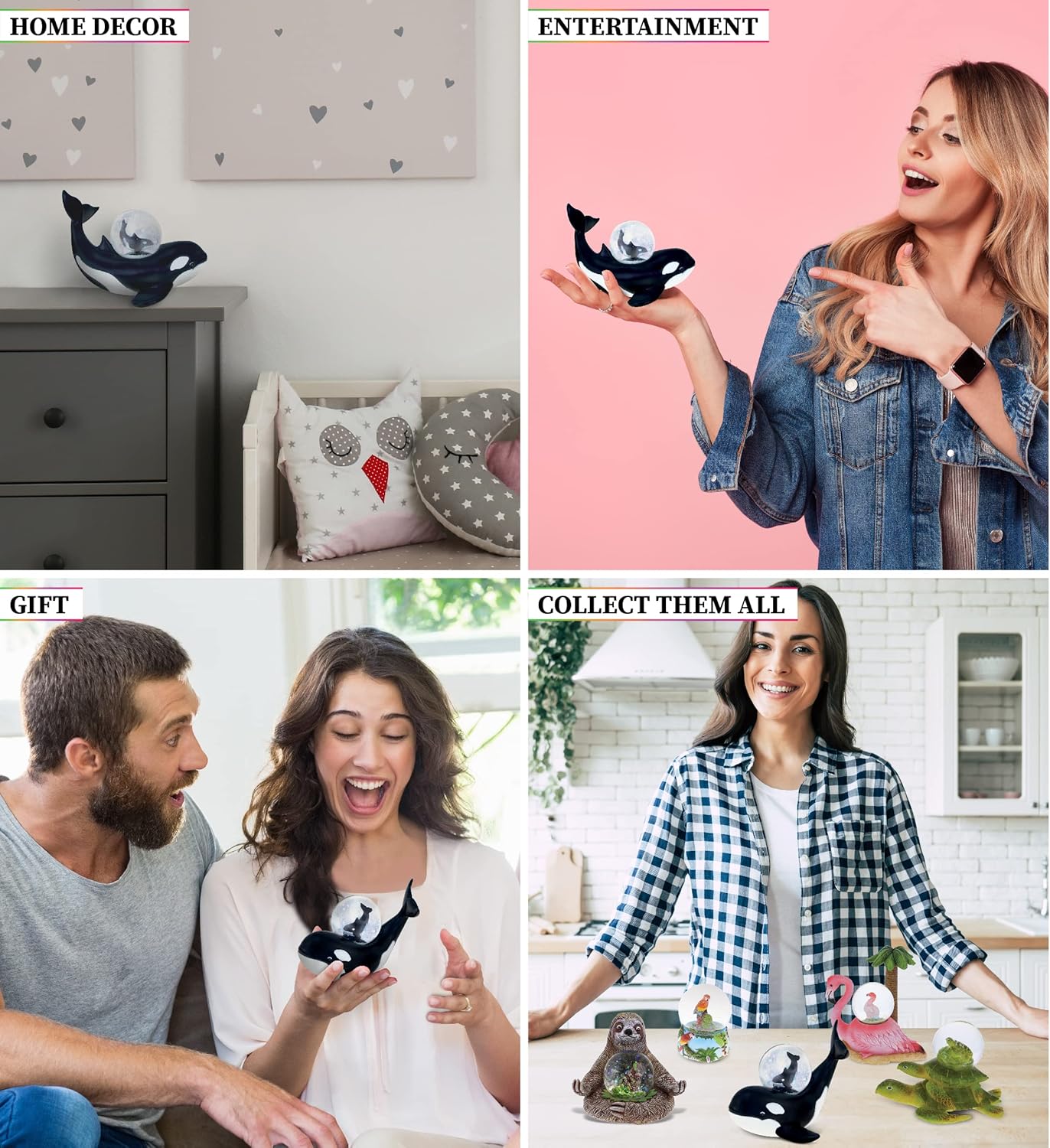 - Ideal Use for Killer Whale Snow Globe Centerpiece - The beautiful Killer Whale Snow Globe Figurine can be used as tabletop decor for a living room coffee table, or as a fun accent piece on a shelf, and kitchen counter. The cute design of the figurine with snow globe would look perfect in a themed bedroom and anyone can play with the cute room decor! Perfect gift for Birthdays, Christmas, or Valentine's!