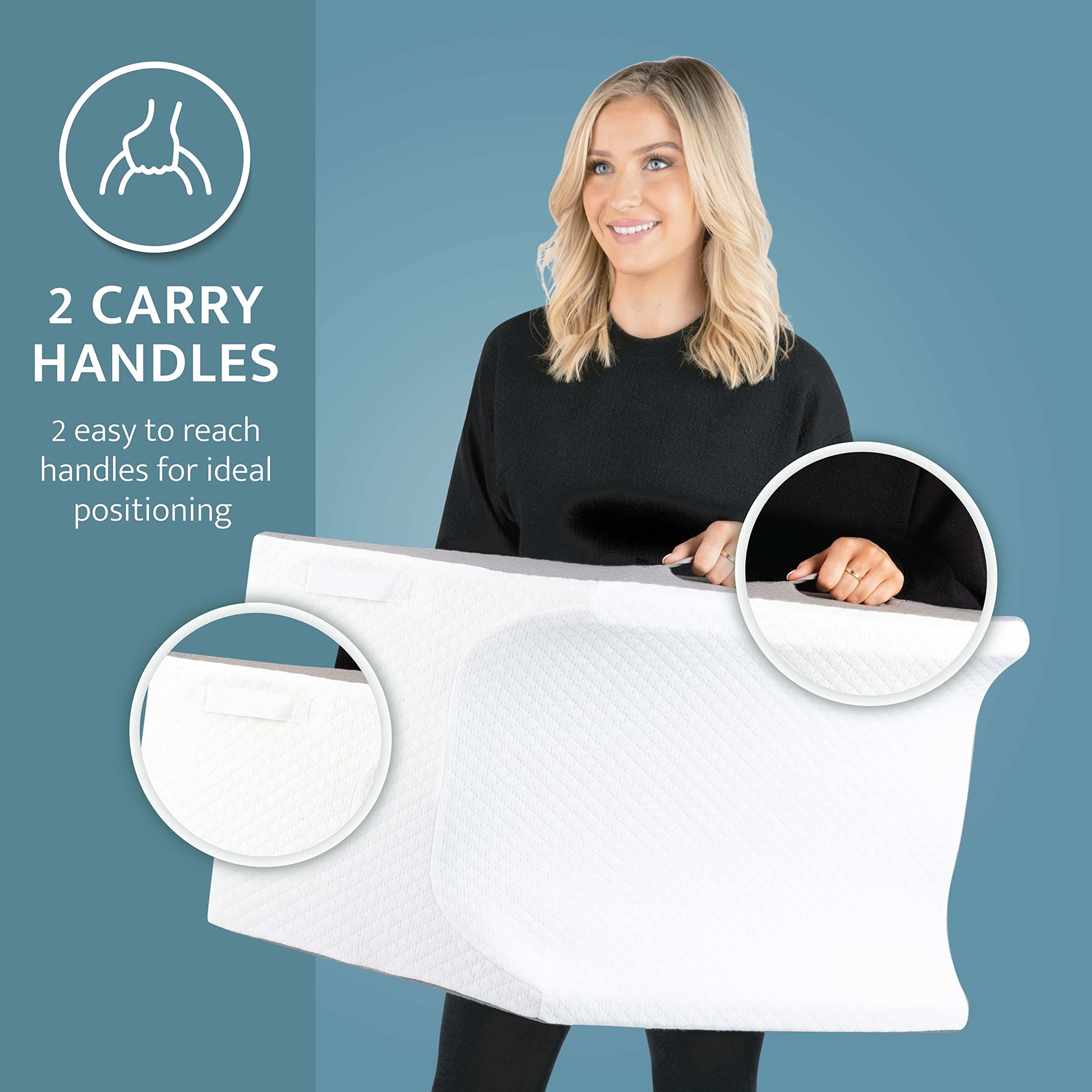 - LUXURIOUS AND STYLISH JACQUARD PILLOW CASE – Hey it’s your bedroom, not a hospital room, give it some style. The Kӧlbs Leg Wedge Pillow features a classic yet contemporary design. The removable jacquard pillow case protects the incline pillow from stains while promoting a comfortable night’s sleep. Cover is MACHINE WASHABLE and can be removed from the leg cushion core. Convenient carry handle and positioning handle.