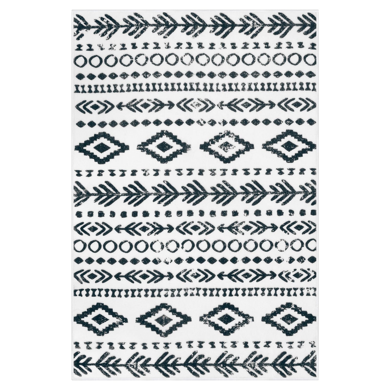 - [Boho Print Design]: Featuring a bold white and black geometric pattern inspired by tribal designs. Its striking, symmetrical look complements various interiors, and can be used in a variety of styles including Boho, Farmhouse, Moroccan, Western and Rustic