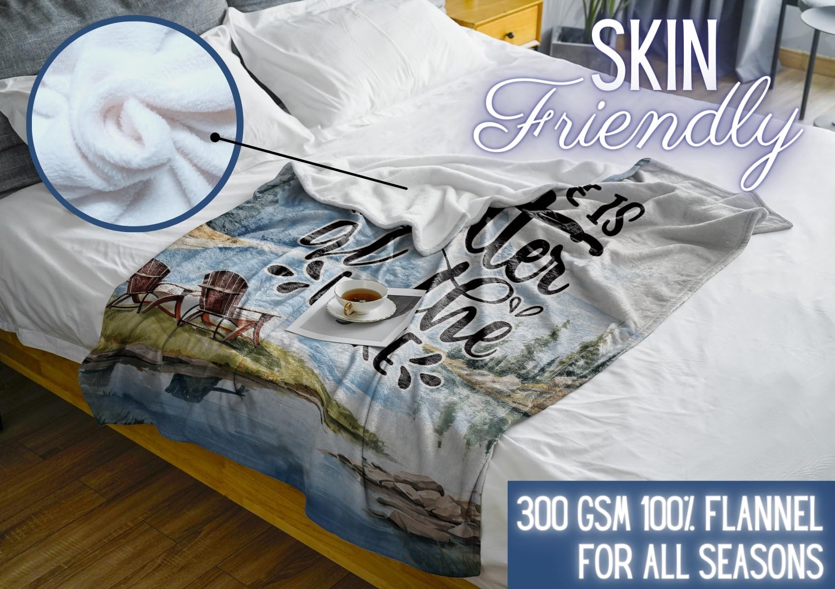 Details: Lake House/Life Gifts Throw, Flannel Blanket for Women Men, 50" x 65" - House Decor Decorations - Life is Better