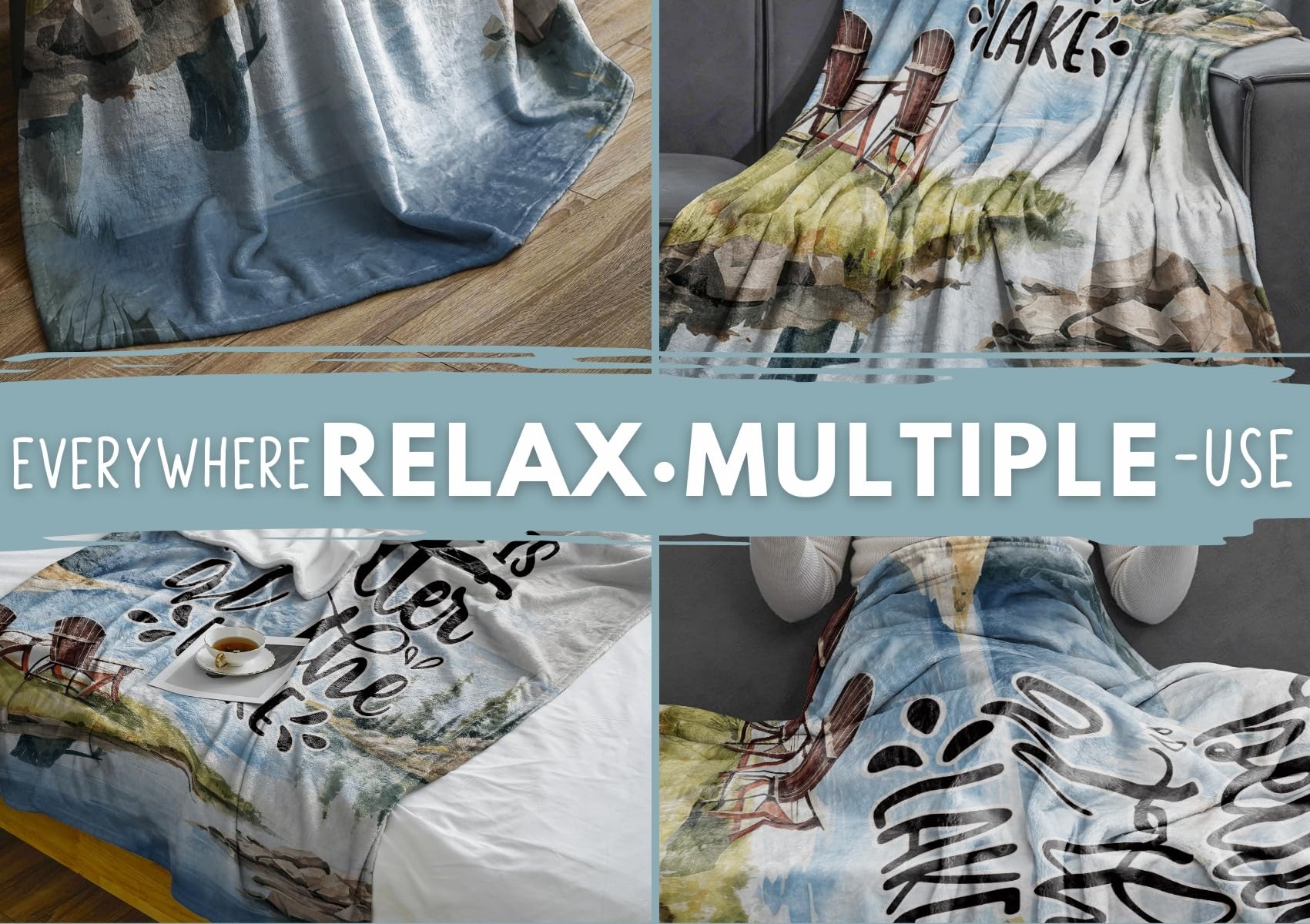 Lake House/Life Gifts Blanket Throw for Women Men - Boating/Fishing Gifts - House Decor Decorations for Home Porch Bed Sofa - Better, 50" x 65"