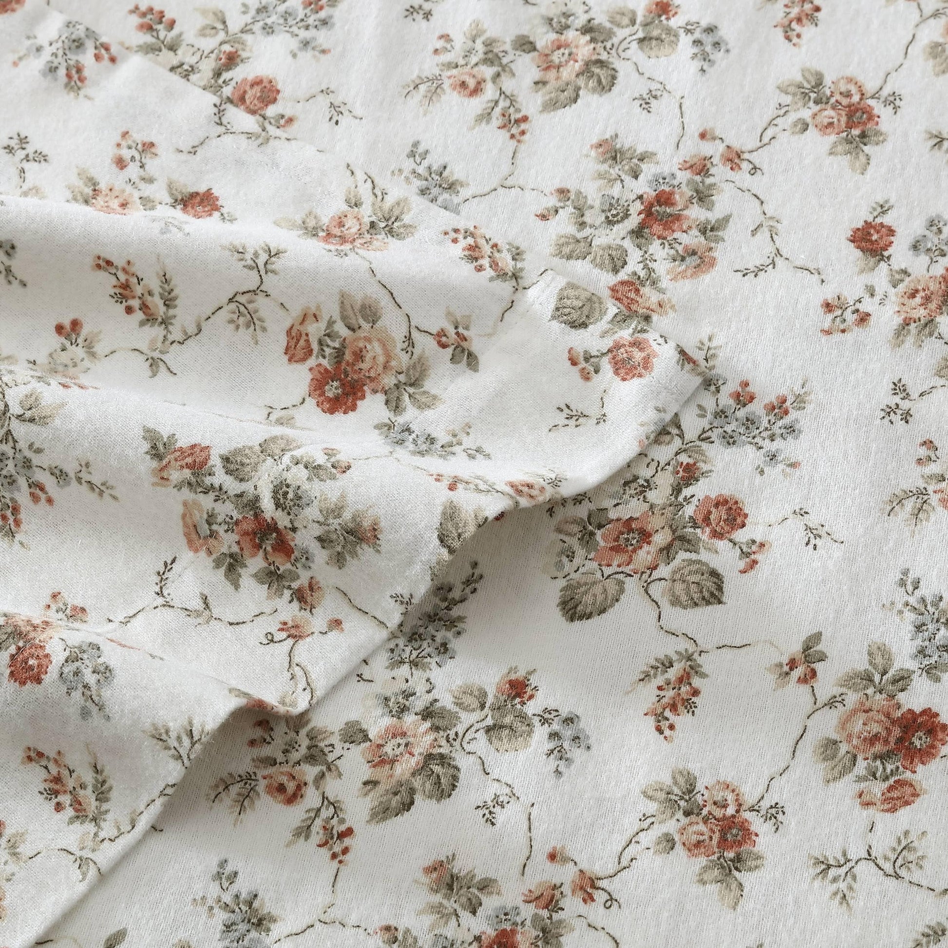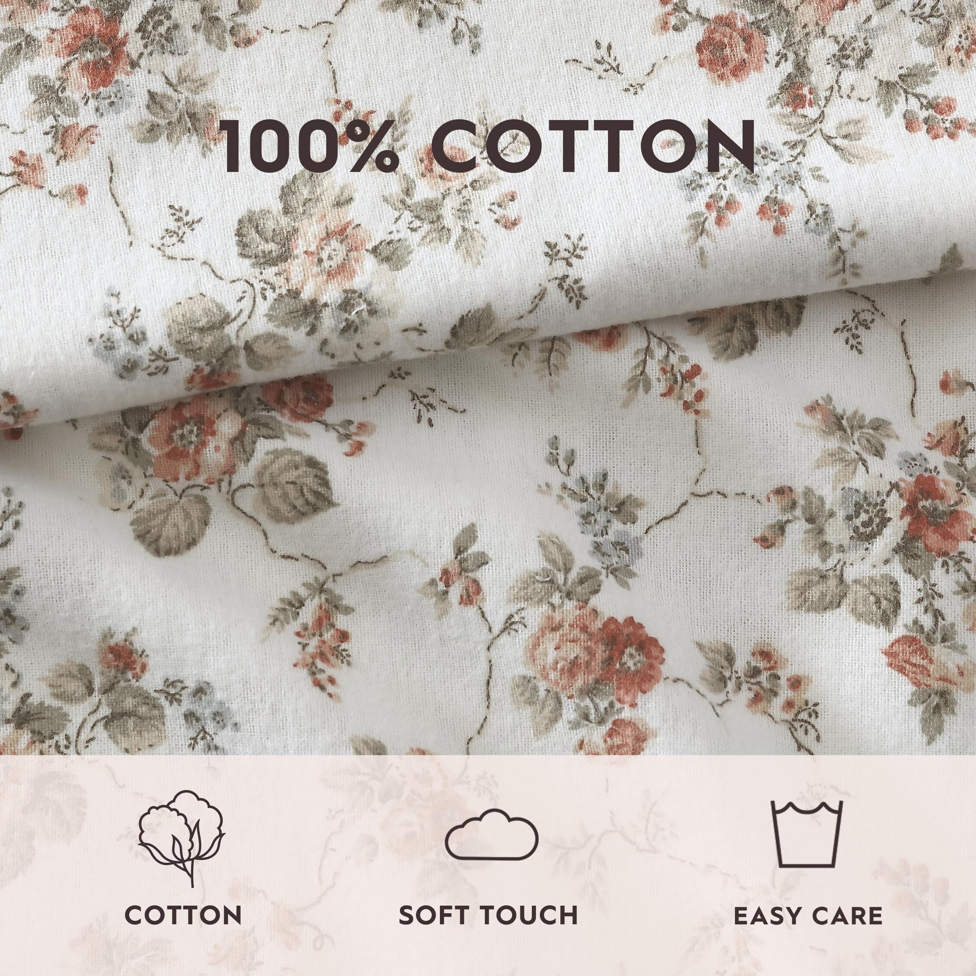 Laura Ashley - King Sheet Set, Cotton Flannel Bedding, Brushed for Extra Softness & Comfort (Le Fleur Orange, King)