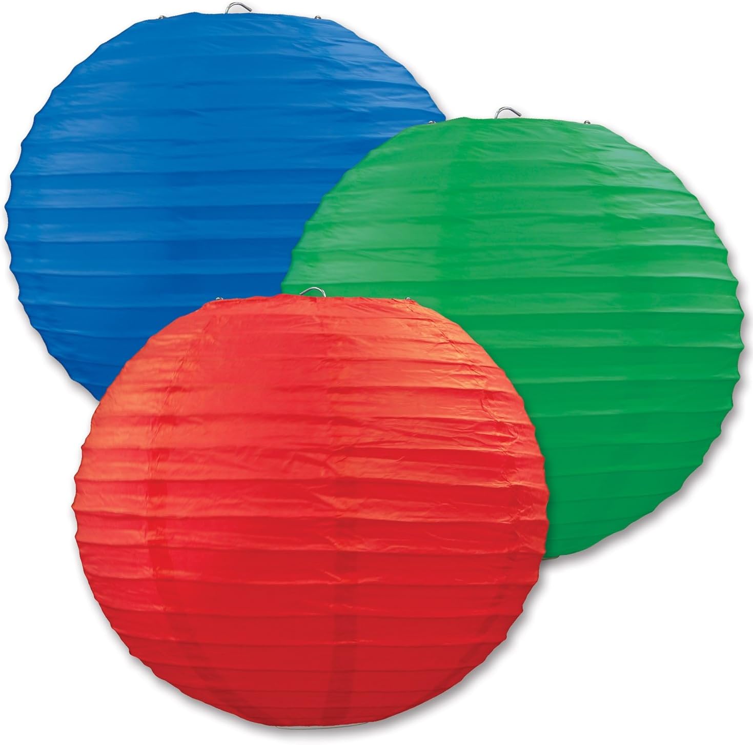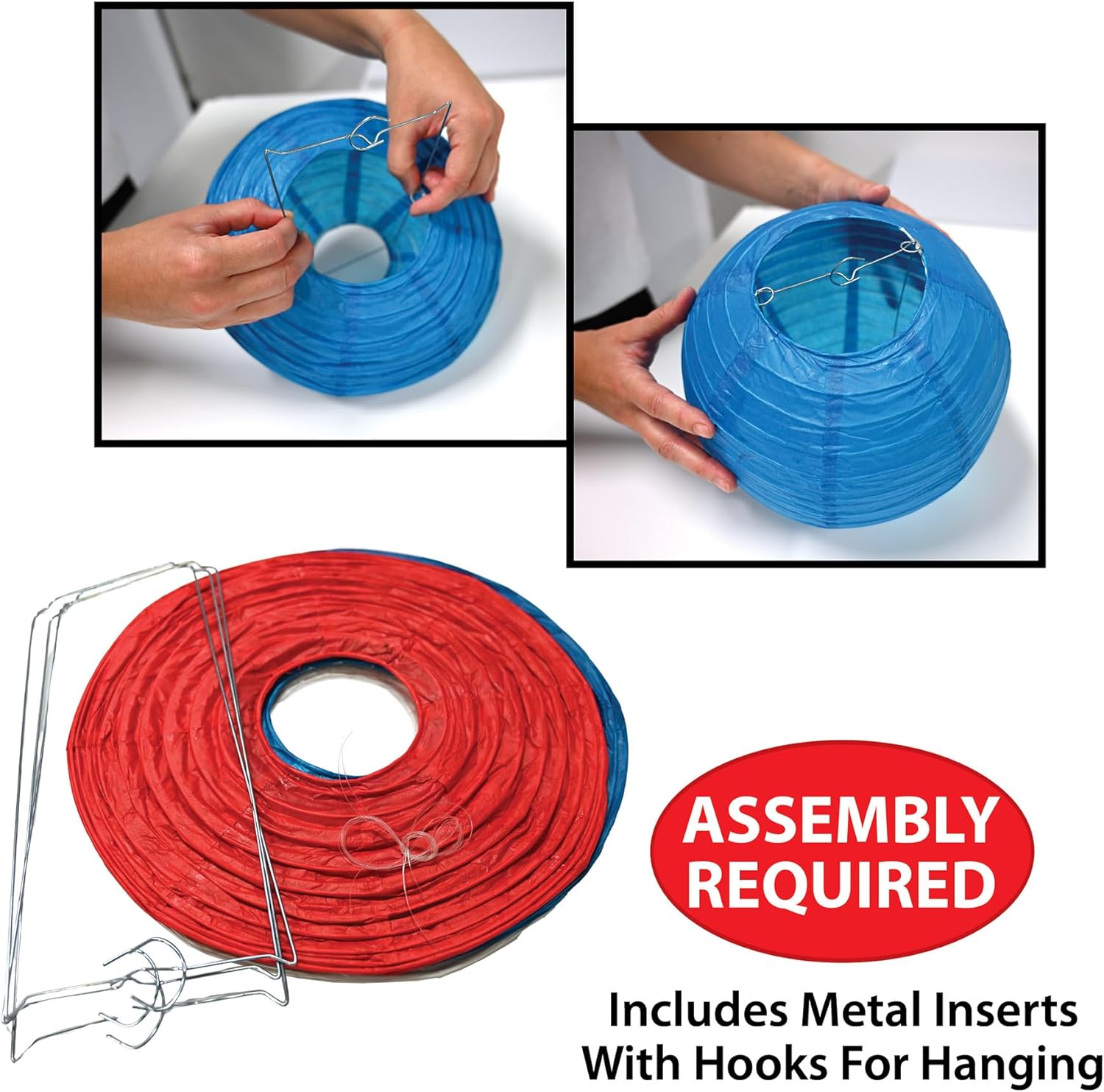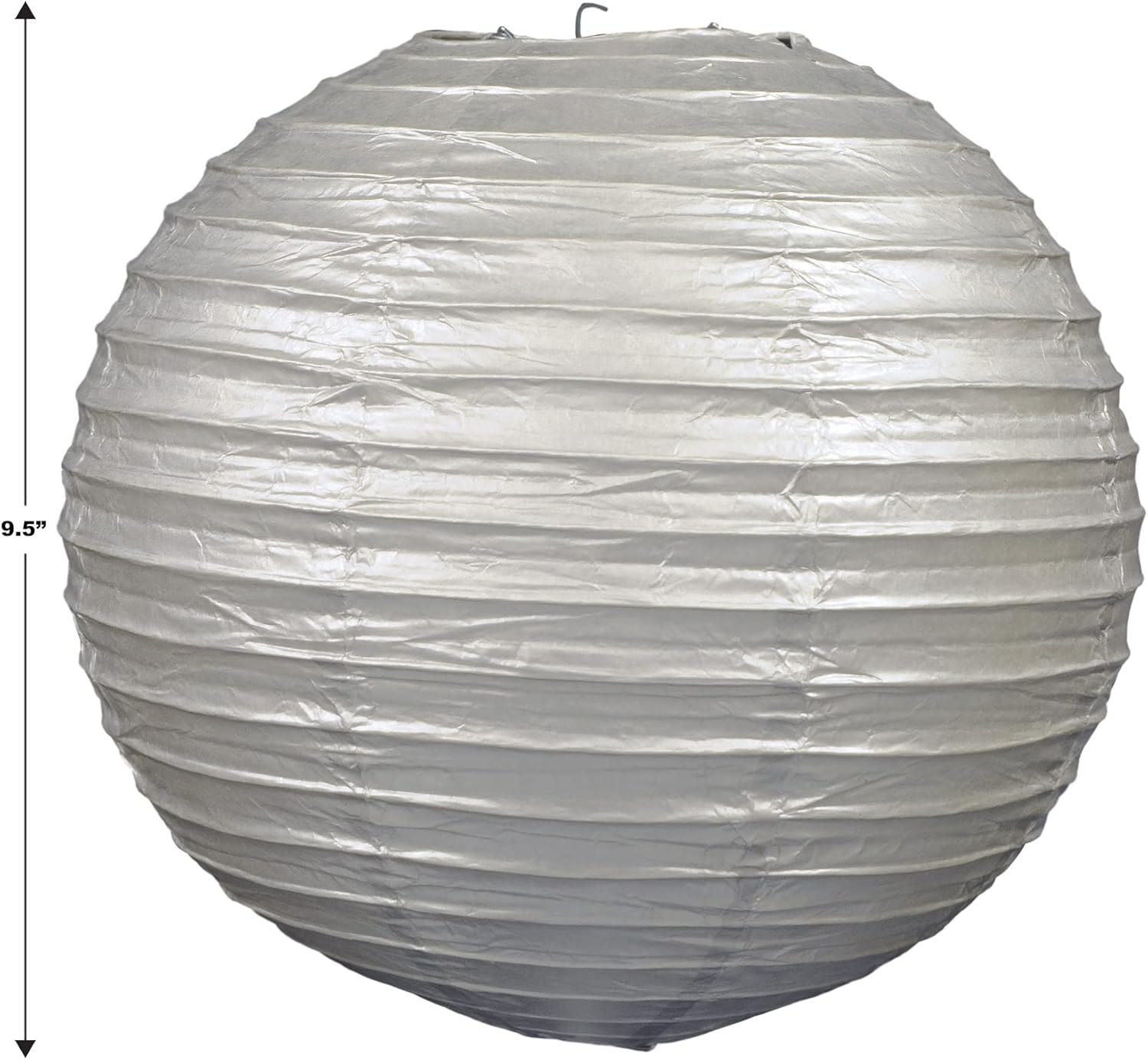Beistle 54570-L Lavender Paper Lanterns. The package contains 3 lavender paper lanterns. These lanterns are made of paper and measure 9.5 inches. Three metal supports are included in the package - one for each lantern. Assembly is required. The metal supports will have to be put inside the lanterns to make them stay round. A cord is attached to each lantern for hanging. These pretty lavender lanterns can be hung up for many different occasions!.