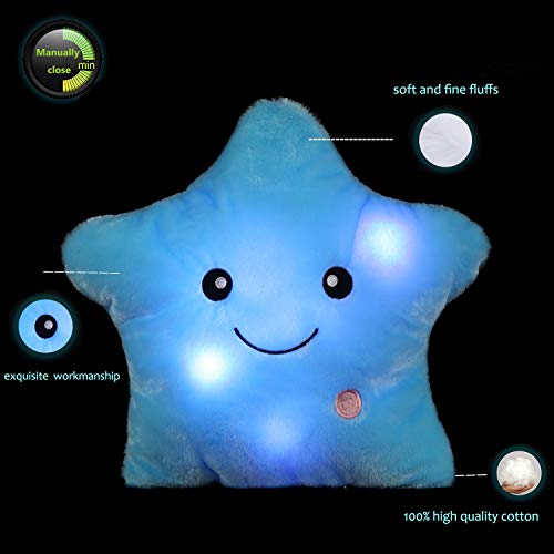 - This adorable blue glow star shaped pillow toys has a lanyard and is ideal for families, parties, holiday decorations such as Christmas present, Valentine's Day, children's birthday parties, children's rooms and more.
