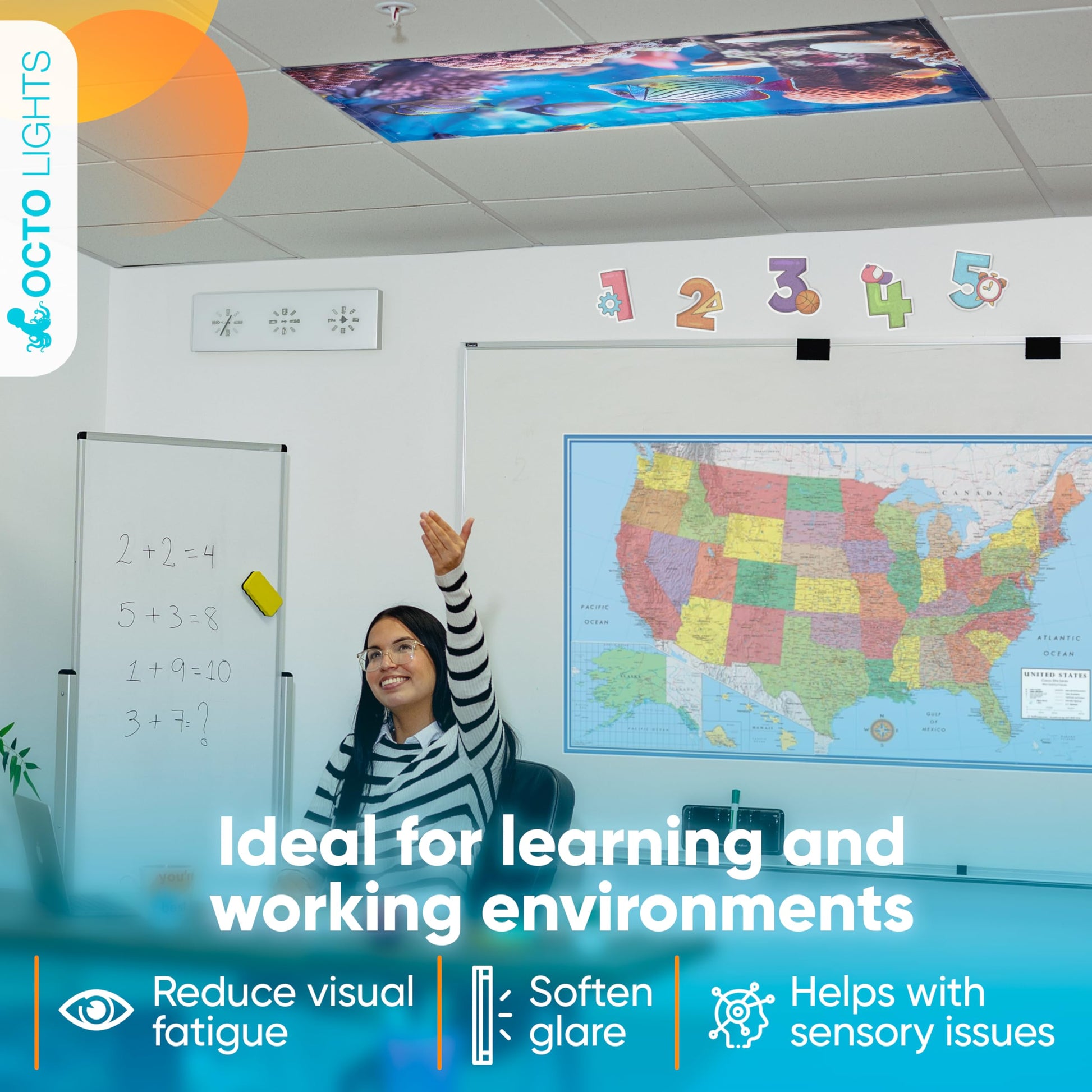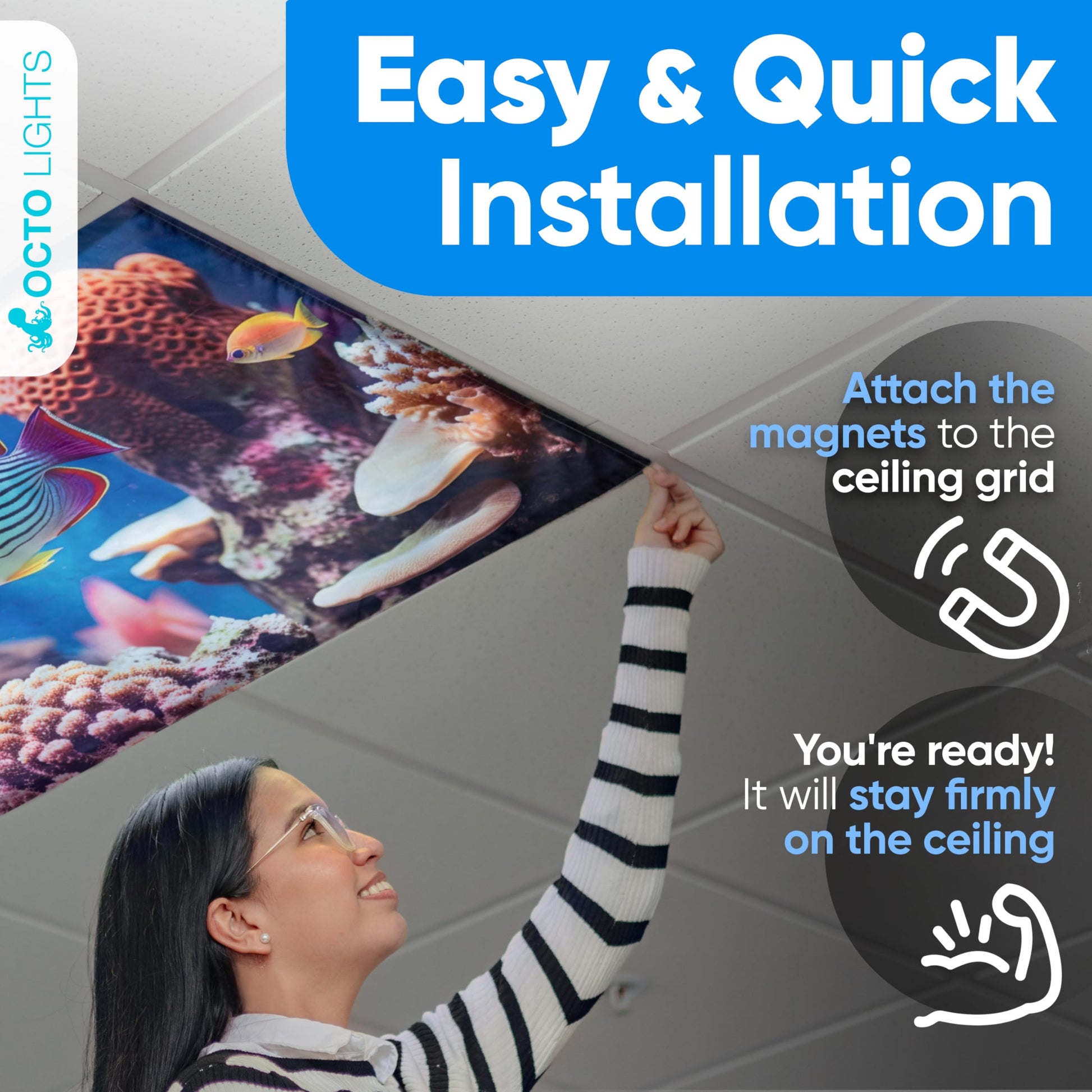 Light Covers for Ceiling Lights Classroom - Magnetic Ocean Cover for Fluorescent Or LED Fixture - Must Haves for Teacher Supplies - Home, Office Cubicle Decor - Calming Overhead Lighting