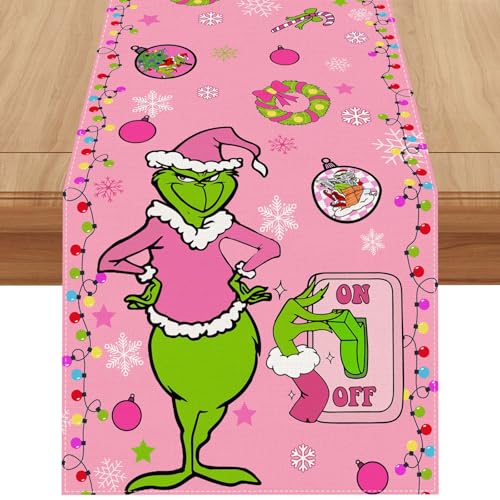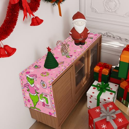 Linen Pink Christmas Table Runner 72 Inches Long Pink Christmas Decor Christmas Xmas Winter Holiday Home Kitchen Dining Room Table Decorations