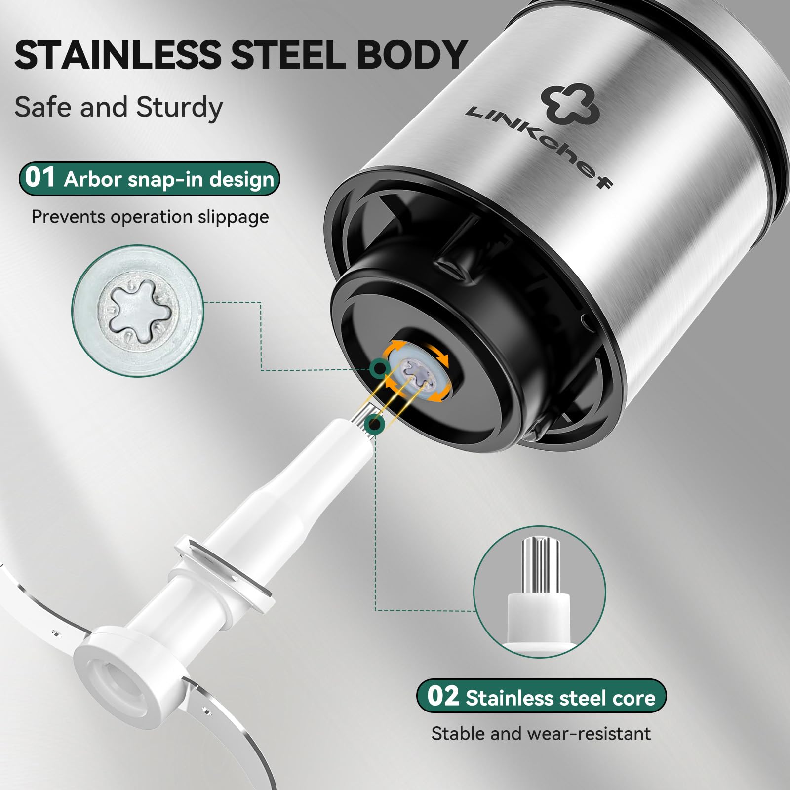LINKChef Food Chopper, 8 Cup Food Processor Mini Electric, 2L 600W Meat Grinder with 4 Bi-Level Blades, Stainless Steel Mincer for Kitchen, Vegetable, Onion, Garlic, Salad, Baby Food, Fruit, Nuts