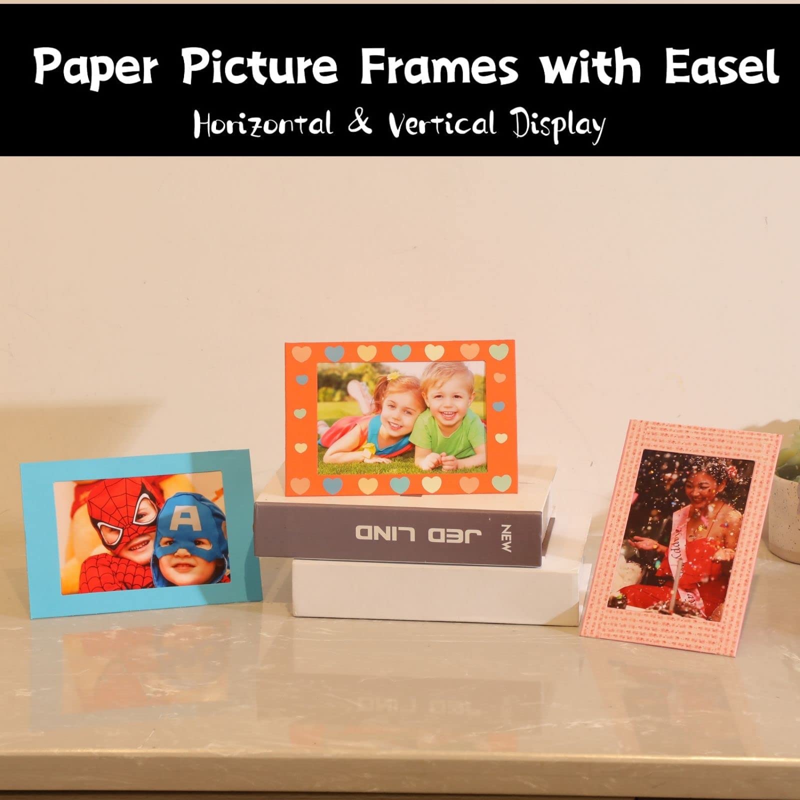 - ✏️【 Sturdy Easel Cardboard Frames 】–These photo frames 4x6 is a standing frame for both horizontal and vertical pictures.The easel stands can be folded flat for storage when the frames are not in use. Easy to decorate and reusebale and disposable!