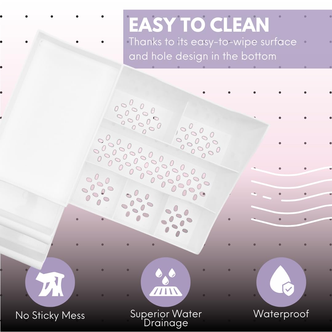 - ROOM FOR EVERYTHING- This dresser organizer countertop has room for everything! With two drawers and six spacious compartments, this beauty organizer will hold it all easily.