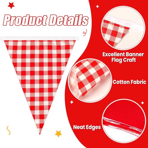 MARFOREVER 28 FT Red Plaid Checkered White Pennant Banner Flags, 30 Pcs Fabric Triangle Flag Bunting Garland Banner for Picnic Wedding Birthday Carnival Baby Shower Christmas Garden Party Decorations
