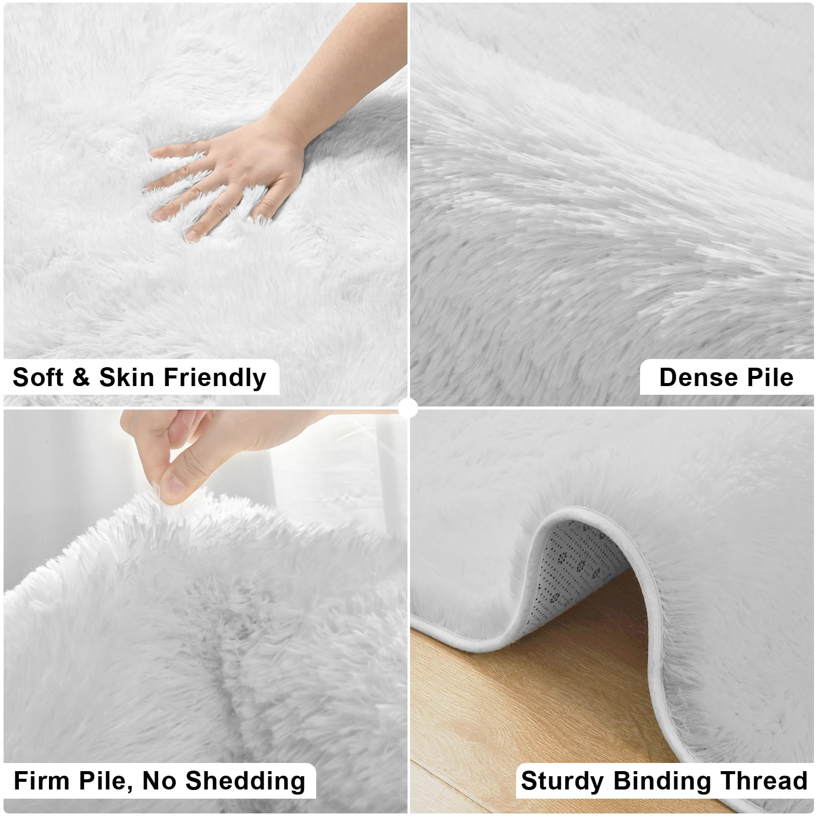 - Featurs ultra soft, fuzzy, fluffy plush, does not contain any harmful substances, no smell, no shed. Luxuriously plush 1.5 inch pile height for sink-in comfort. This high quality decorative rugs is also kids and pets friendly