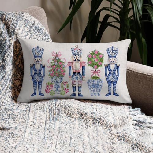 Merry Christmas Throw Pillow Cover 12x20 Inch Chinoiserie Nutcracker Christmas Decor Winter Holiday Party Cushion Case Decoration for Sofa Couch