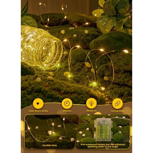 - Portable & Waterproof Design ? These fairy lights battery operated are perfect for areas without outlets or during power outages. Featuring an IP44 waterproof battery box and durable LED bulbs, they shine brightly even in wet weather?ideal for Christmas, weddings, and outdoor d?cor