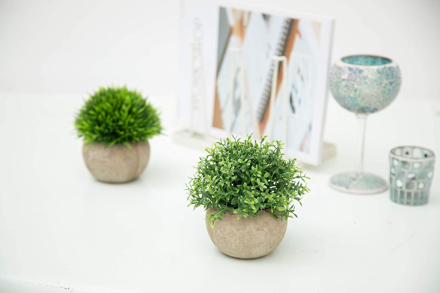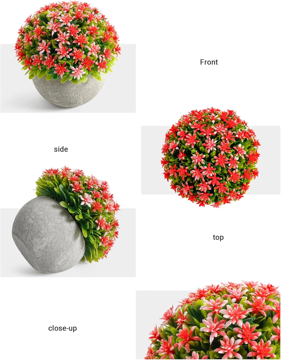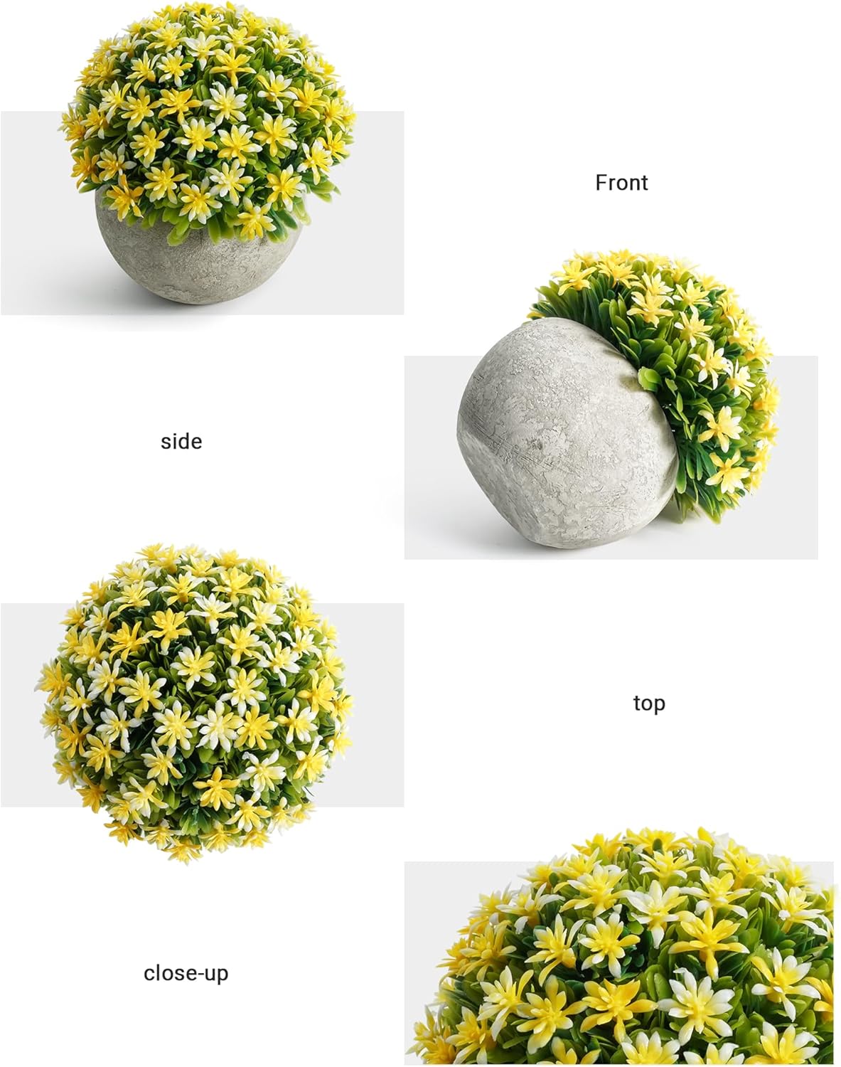 - [Small Fake Plants Indoor & Easy To Care]: Velener's square topiary ball with pot set measures 5.6 x 4.4 x 4.3 inches and fits every space of your home or office. Introduce a hint of greenery and calm to your living space with Velener's white topiary shrub plant. Its lush, bright green leafy stems inspire a rustic farmhouse decor and keep your interiors fresh and perky. Skip the hassle of upkeep and maintenance with our house plants. You can clean using a damp cloth to remove any dirts.