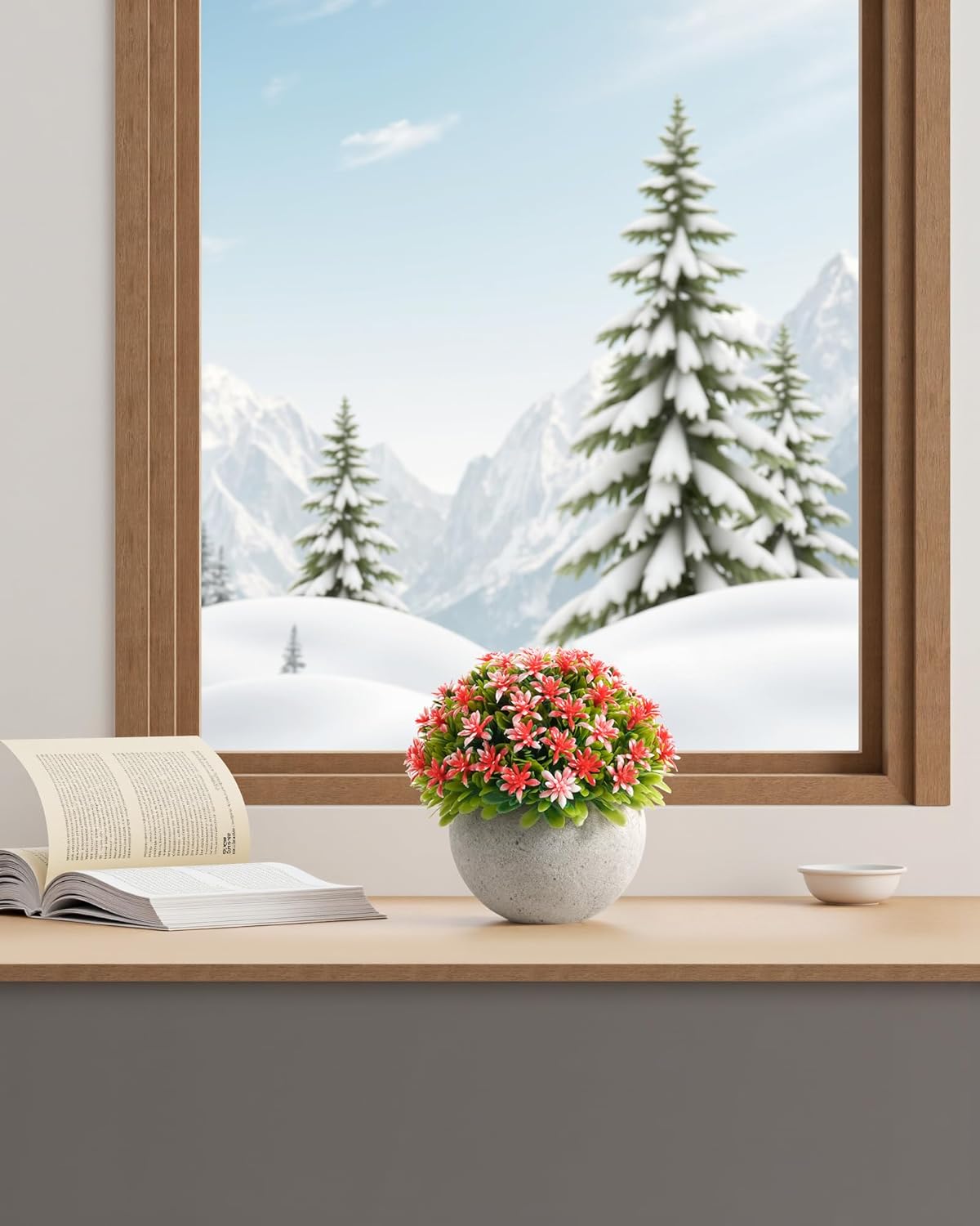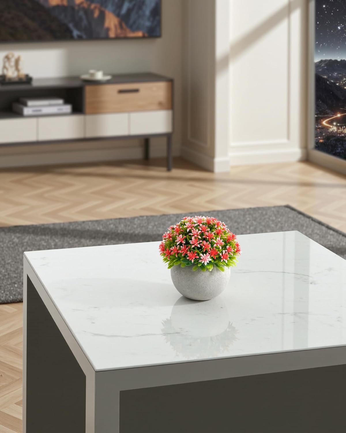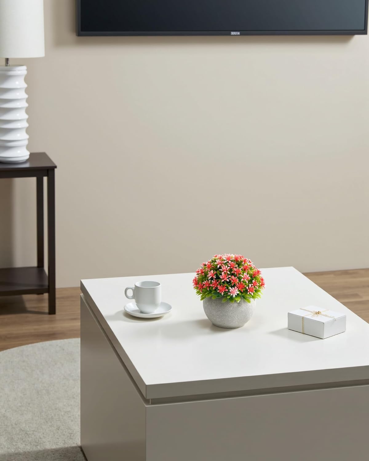- [Small Fake Plants Indoor & Easy To Care]: Velener's square topiary ball with pot set measures 5.6 x 4.4 x 4.3 inches and fits every space of your home or office. Introduce a hint of greenery and calm to your living space with Velener's white topiary shrub plant. Its lush, bright green leafy stems inspire a rustic farmhouse decor and keep your interiors fresh and perky. Skip the hassle of upkeep and maintenance with our house plants. You can clean using a damp cloth to remove any dirts.