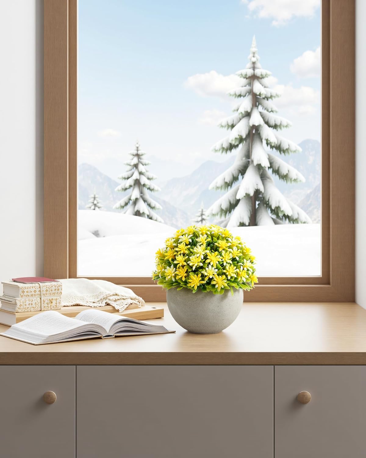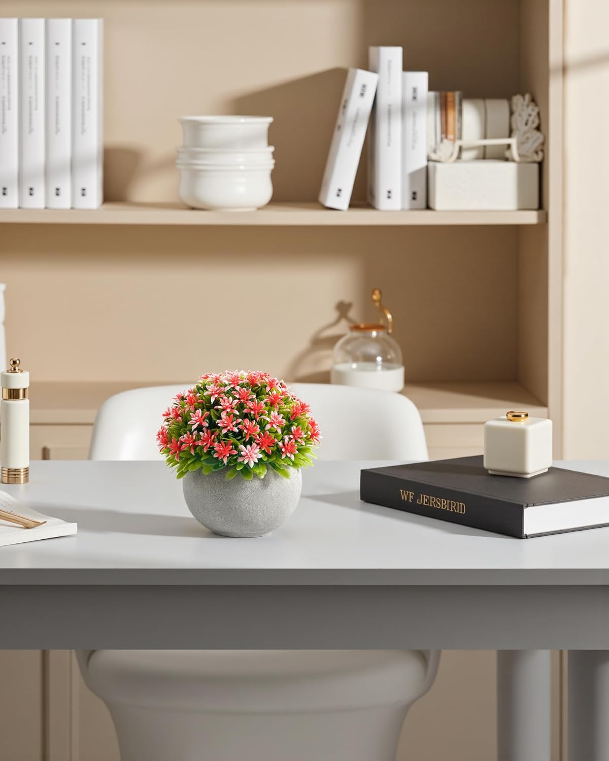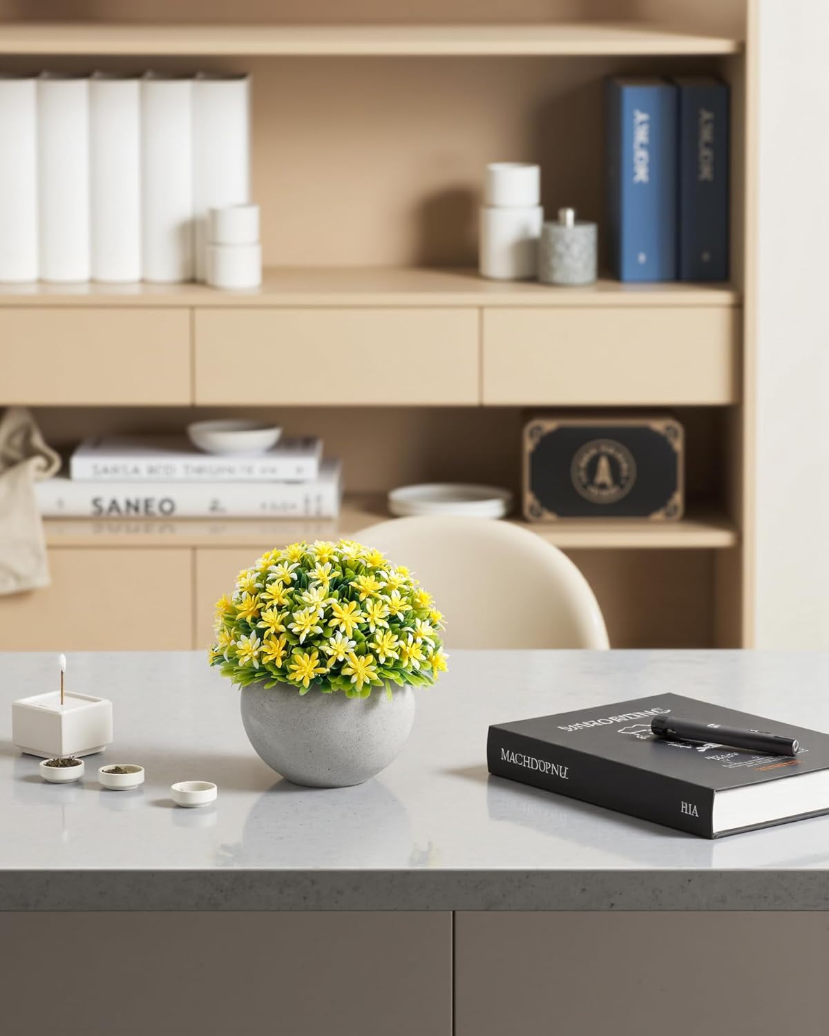 - [Premium Realistic Nearly Natural Artificial Plants]: Our small plants look like real plants from any angle through careful craftmanship with premium materials. The PE leaves ensure it is waterproof & durable while the paper mache pots are lightweight and convenient. It also environmentally sustainable and safe to use. To ensure long lasting, avoid the plant pot from any contact with water or humid environments as it would be absorb the moisture and disintegrate.