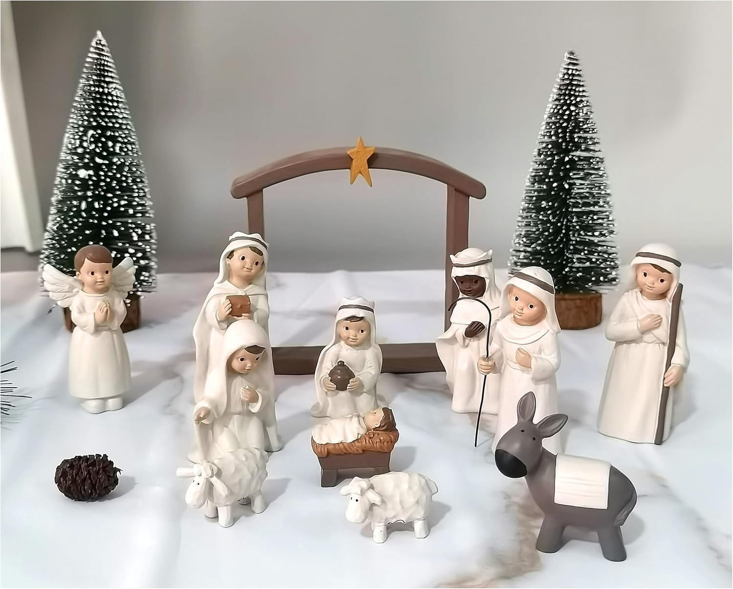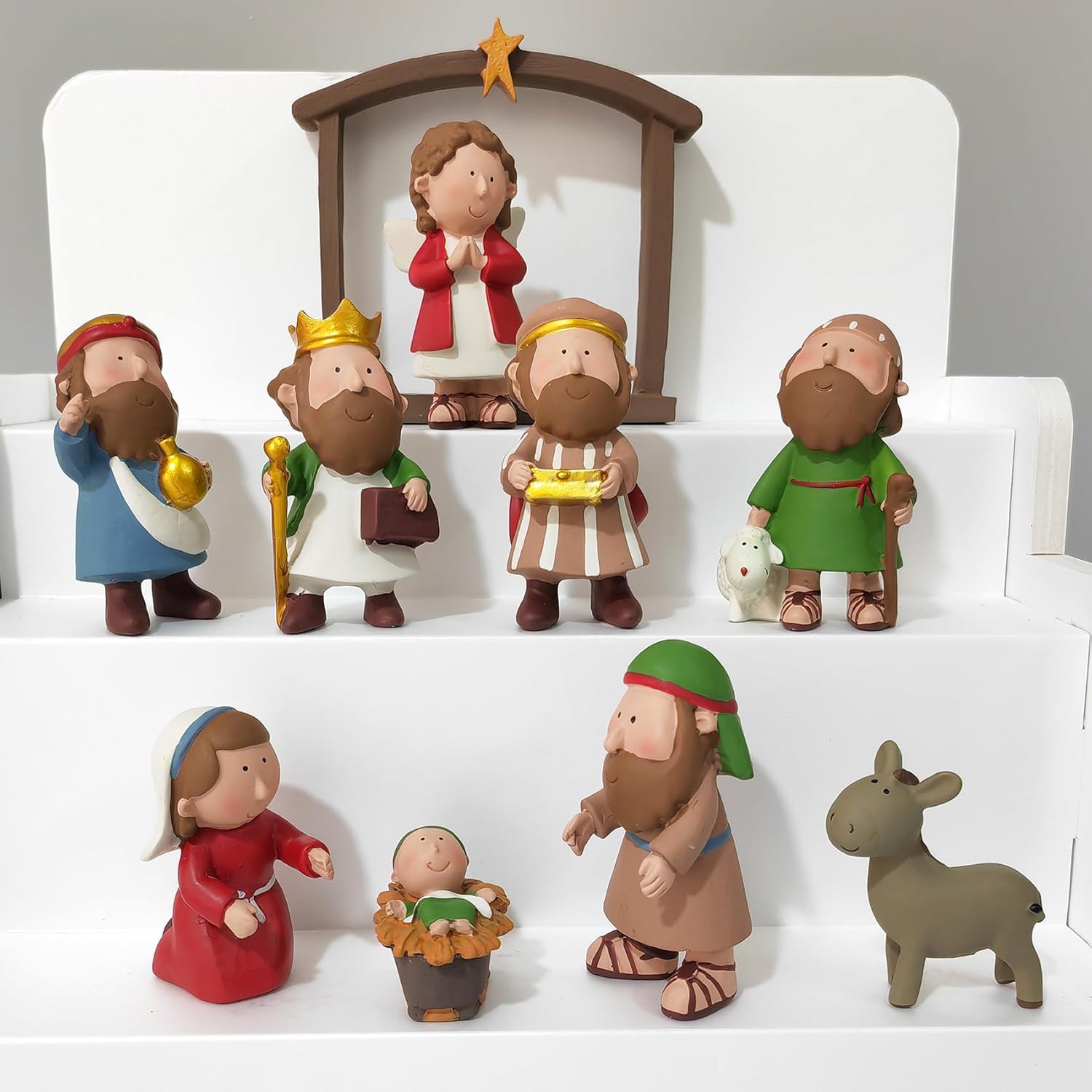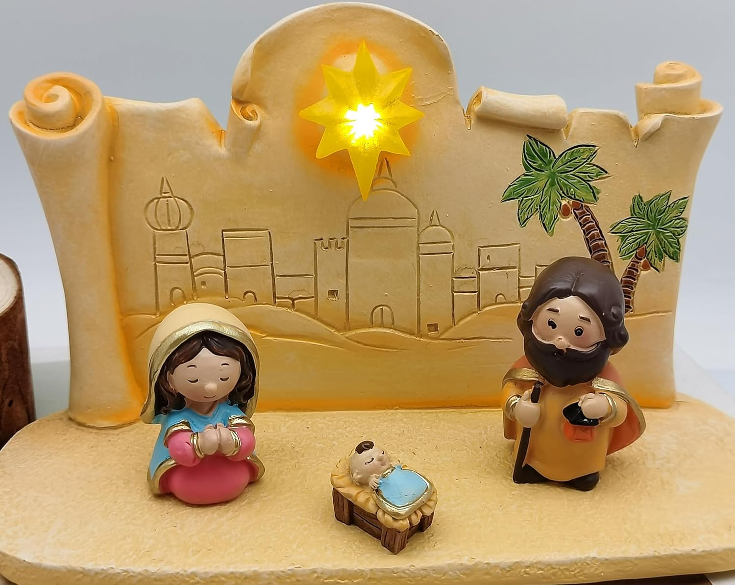 This nativity scene measures 2.87" length x 1.18" wide x 2.56" tall.