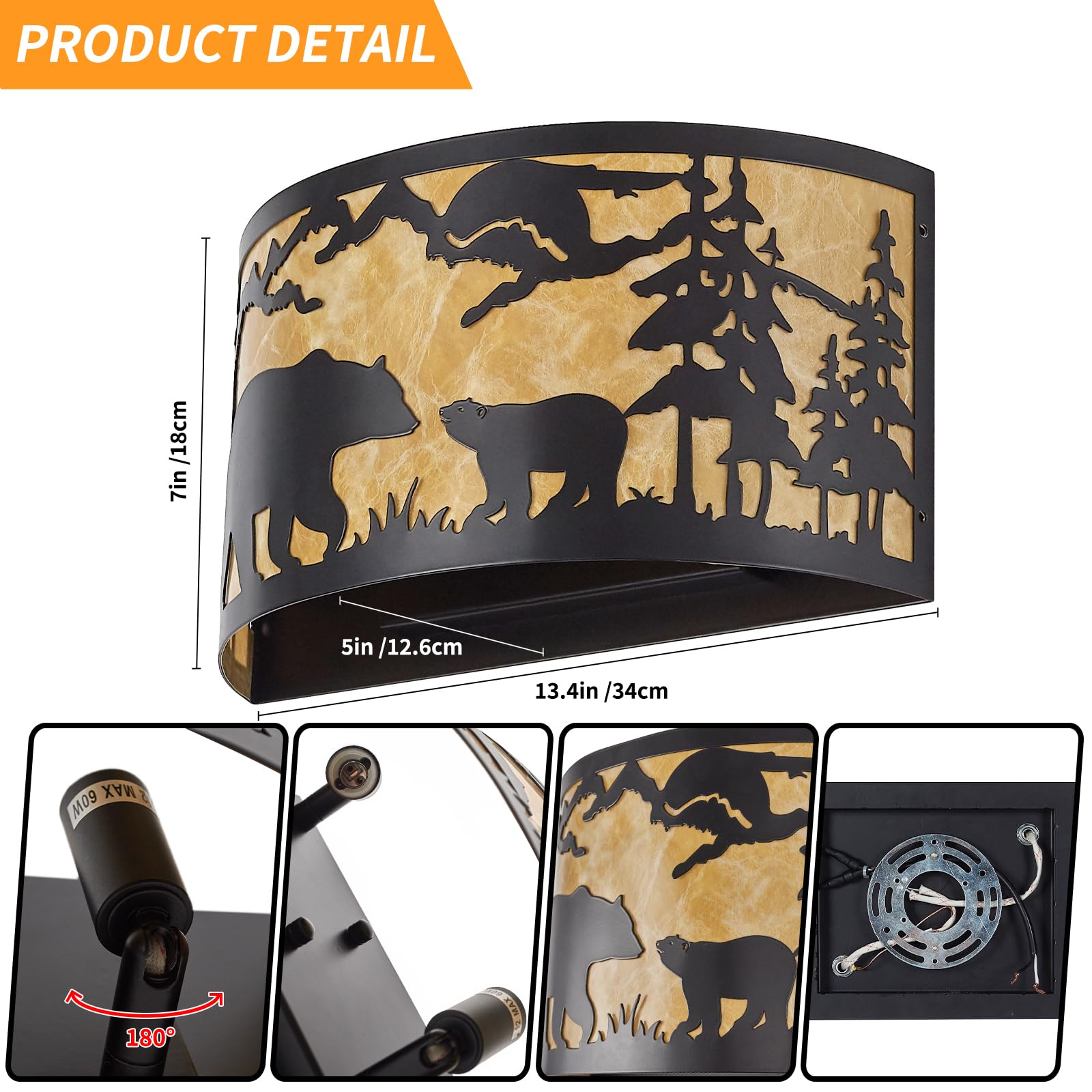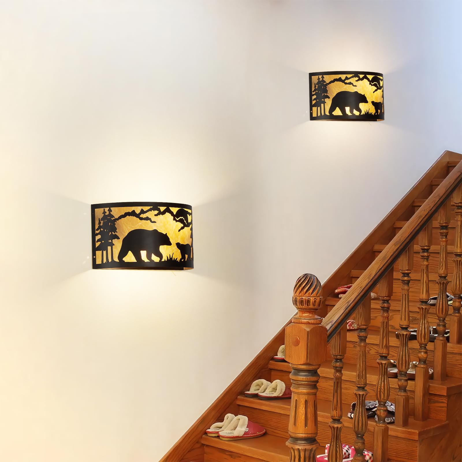 MLGB Farmhouse Bear Wall Sconces, E12 Base Rustic Industrial Wall Lights for Bedroom, Living Room, Hallway, Stairway, and Porch Lighting
