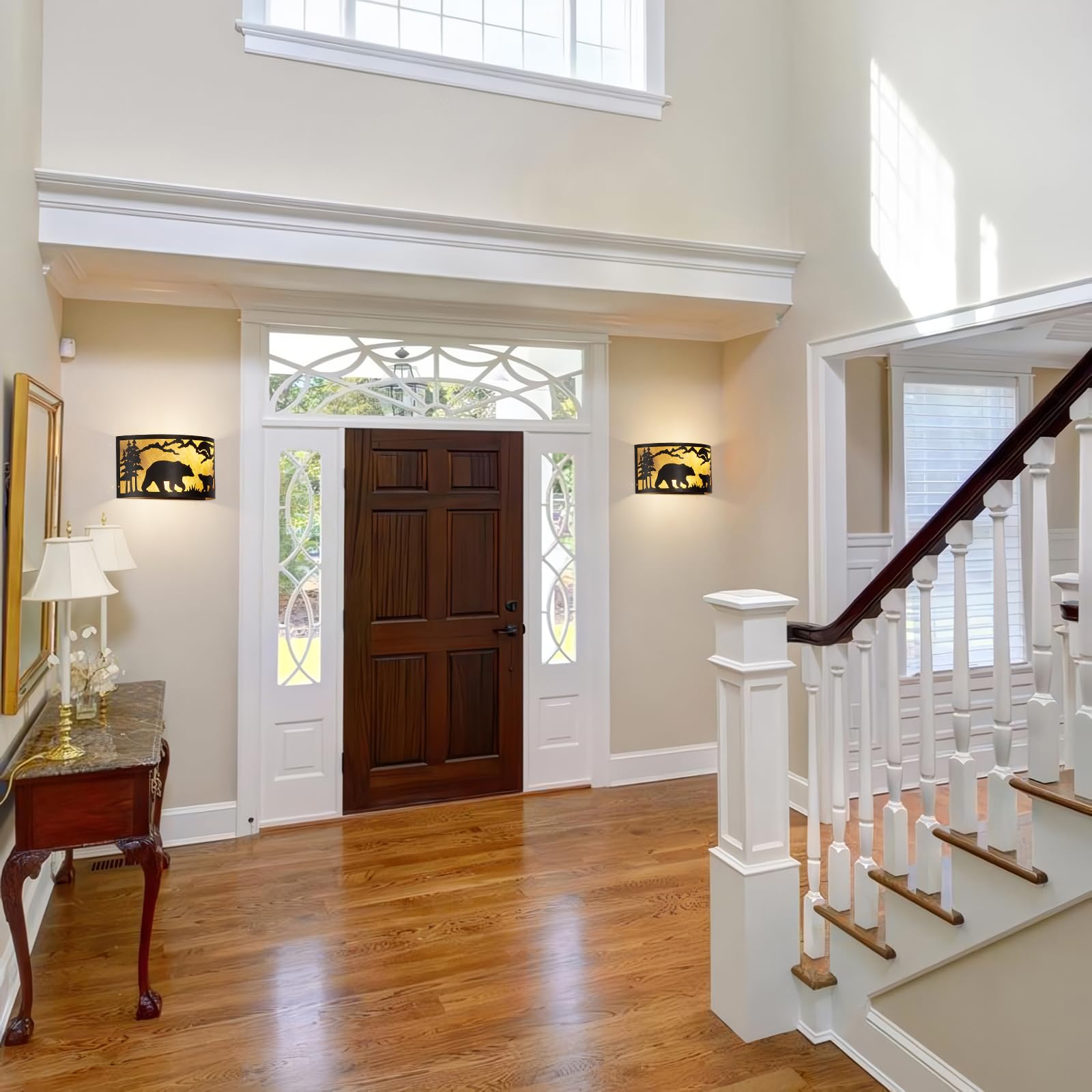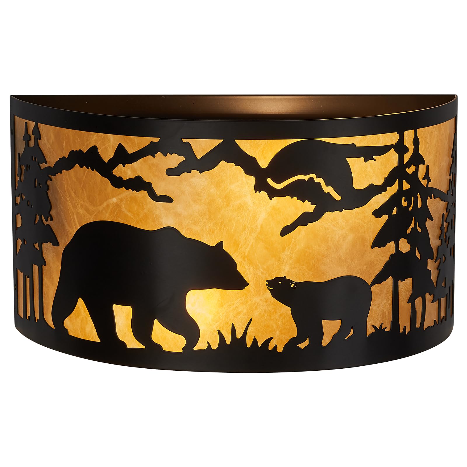 - Rustic Style Design: This wall sconce combines a durable metal frame with a parchment lampshade, featuring intricately cut bear motifs. The blend of materials brings a warm, rustic charm to your