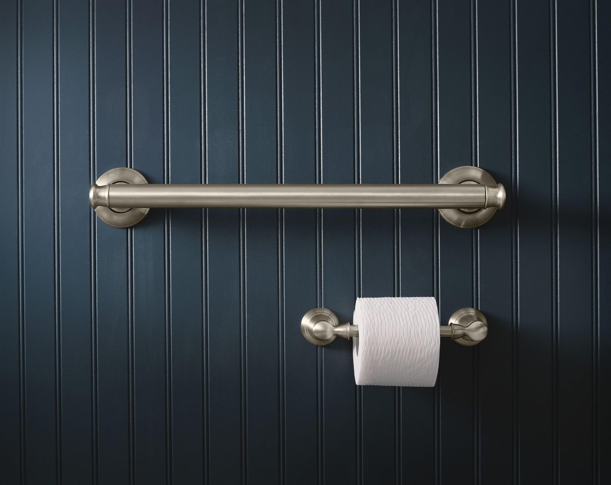 - WARM AND INVITING: Brushed nickel toilet paper holder provides a lightly brushed warm-gray metallic look