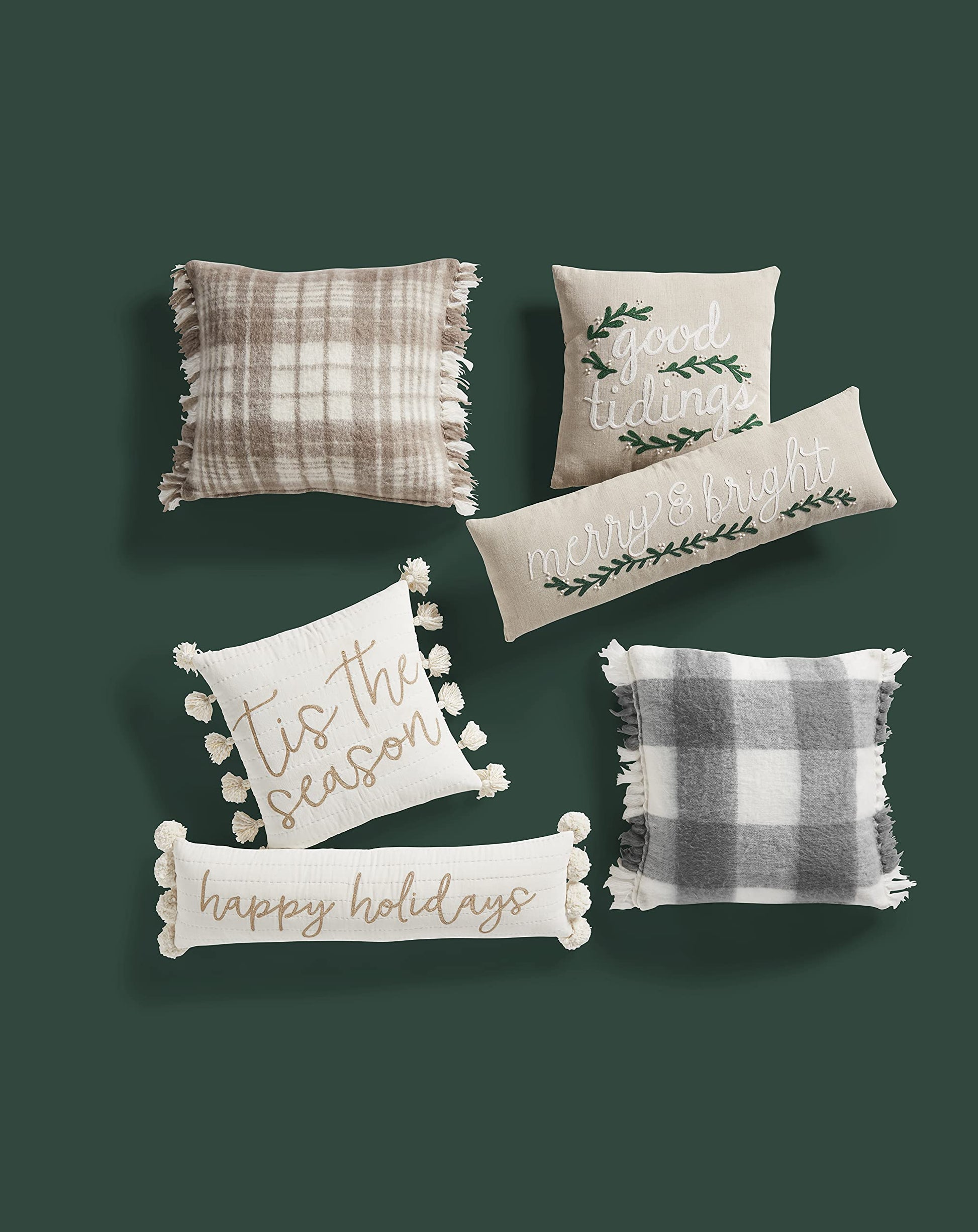 Mud Pie White and Gold Christmas Pillow, Tis' The Season