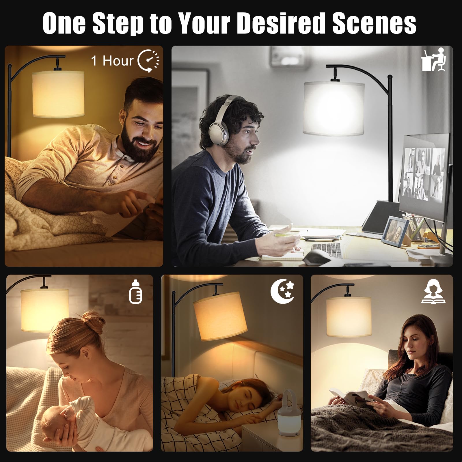 - Floor Lamp with Remote Function-Timer & 4 Scene Modes: 1H Timer: auto turn off the lamp for bedroom if fall asleep. Nightlight: a dim warm light from the lamp stand for kids sweet sleep without afraid of darkness! Reading: eye-caring reading floor lamp immerses you in the book world. Working: focusing floor light creates high efficiency. Breastfeed: a cozy light embraces a nursing mom and baby with love.
