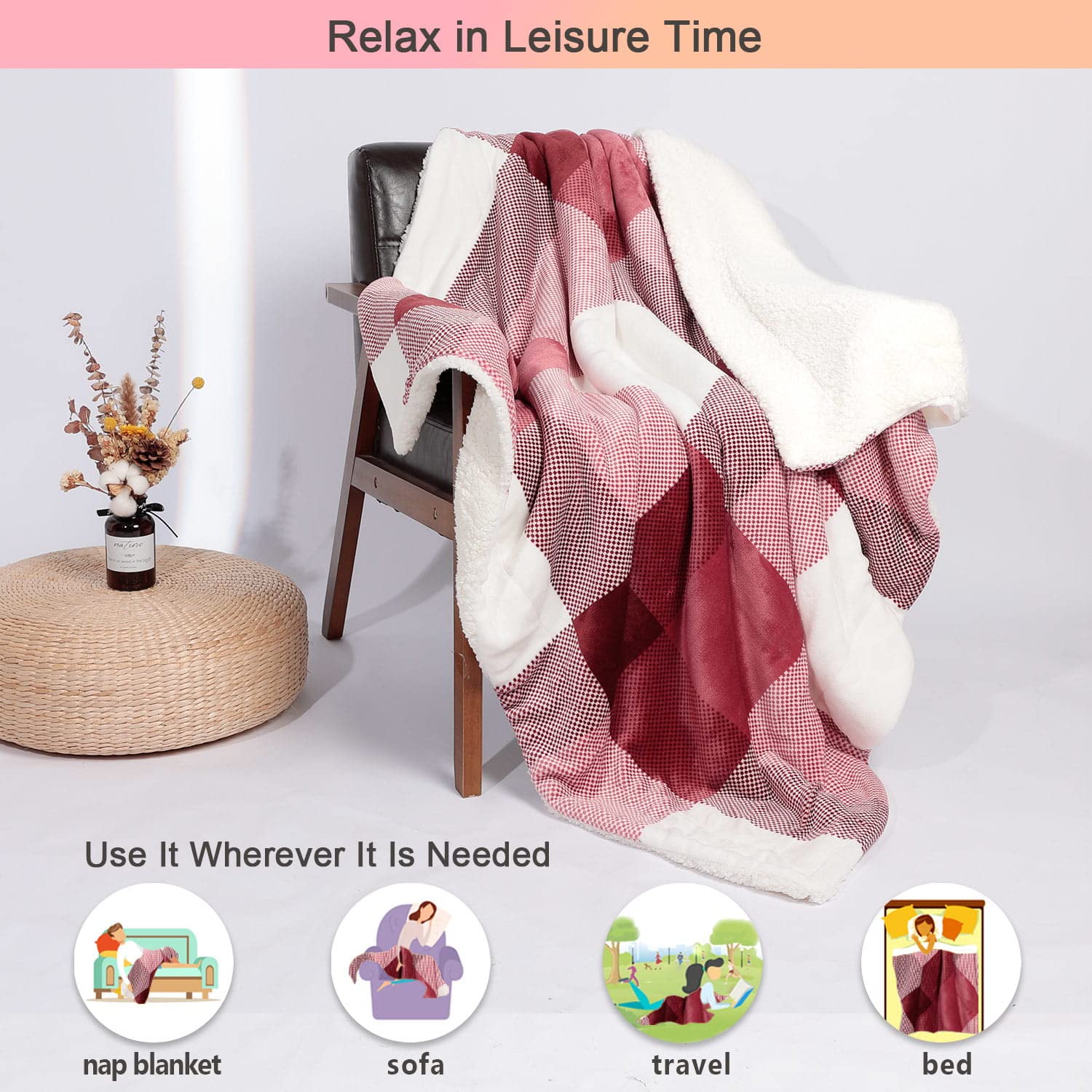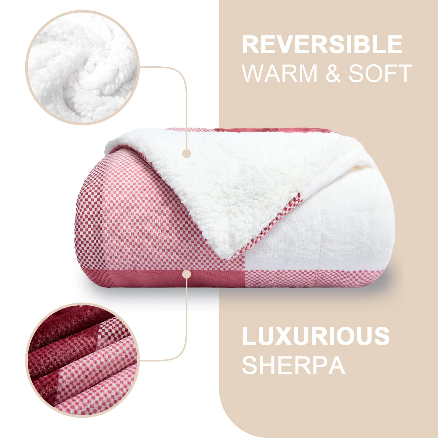 - ONE BLANKET TWO STYLES:This Reversible Sherpa Blanket by NANPIPER comes with fuzzy checkered fleece on one side and warm sherpa lining on the other side. The checkered blanket made with super soft fabric that will keep you warm and cozy while you lounge on your bed or couch.
