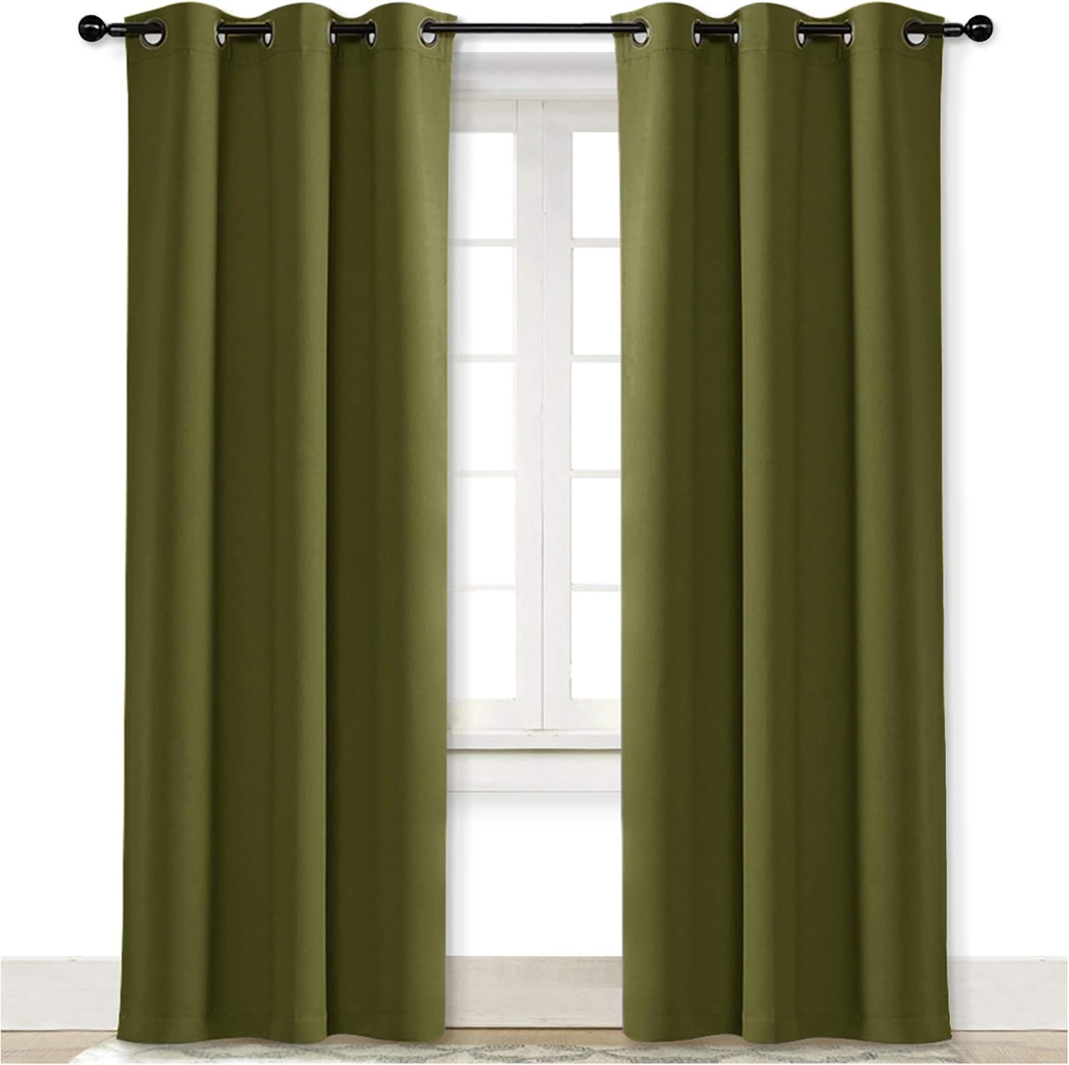 NICETOWN Olive Green Blackout Curtain Panel - Thermal Insulated Room Darkening Drapes for Living Room, 42x84 inches