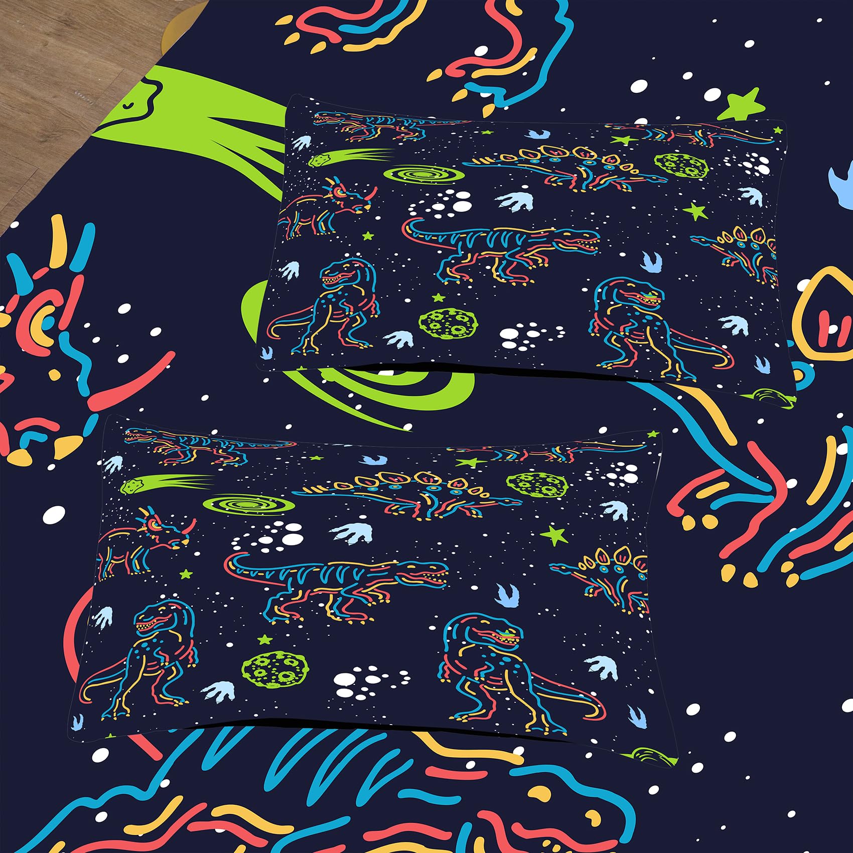 NINENINE Dinosaur Bedding Sets for Boys Kids,Dark Blue Retro Dinosaur Comforter Set,Queen Size Comforter Sets for Kids,with 1 Comforter 2 Pillowcases
