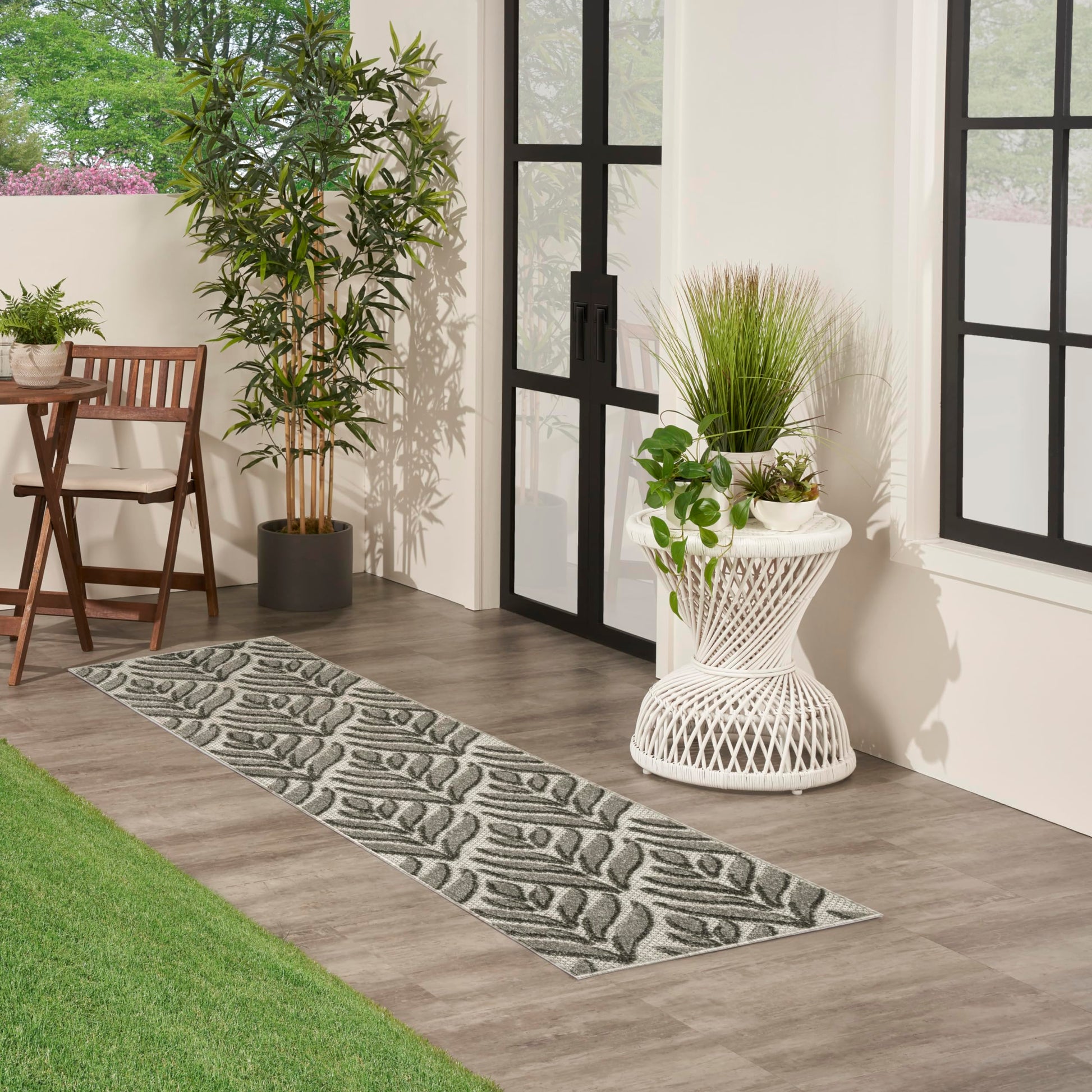 - Tropical outdoor rug adds a subtle sense of depth to your space