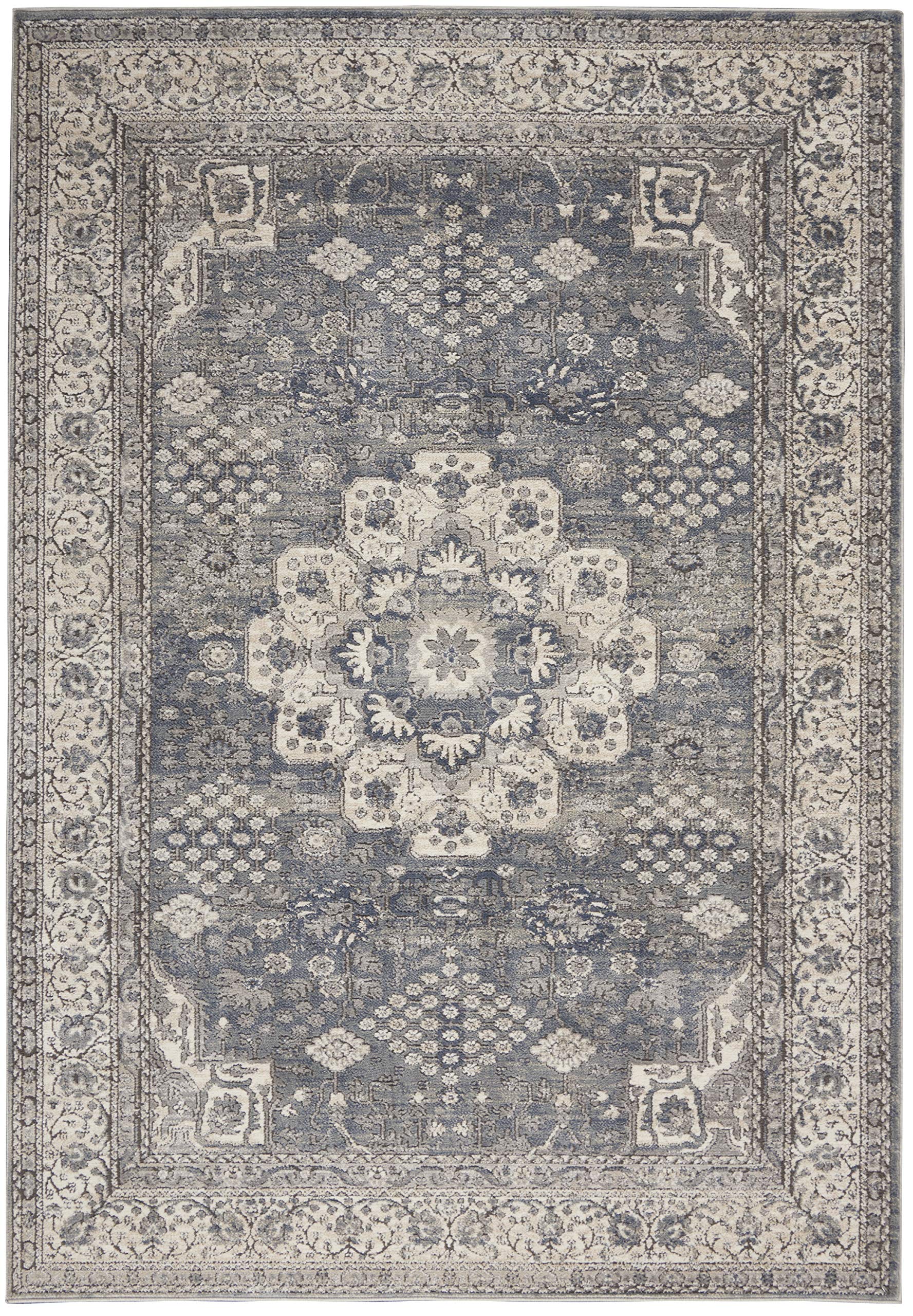 Nourison Concerto Traditional Grey/Ivory 5'3" x Round Area Rug, Easy Cleaning, Non Shedding, Bed Room, Living Room, Dining Room, Kitchen (5 Round)