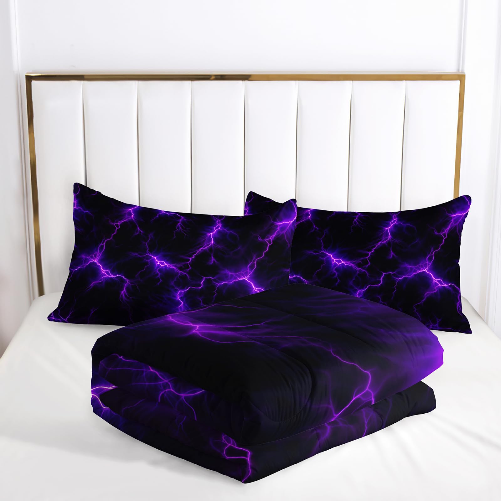 Nttopship Violet Lightning Comforter Set Queen Thunder Bedding Sets 3PCS for Kids Teen Adult Violet Room Decor Ultra-Soft Lightweight Microfiber 1 Comforter with 2 Pillowcases