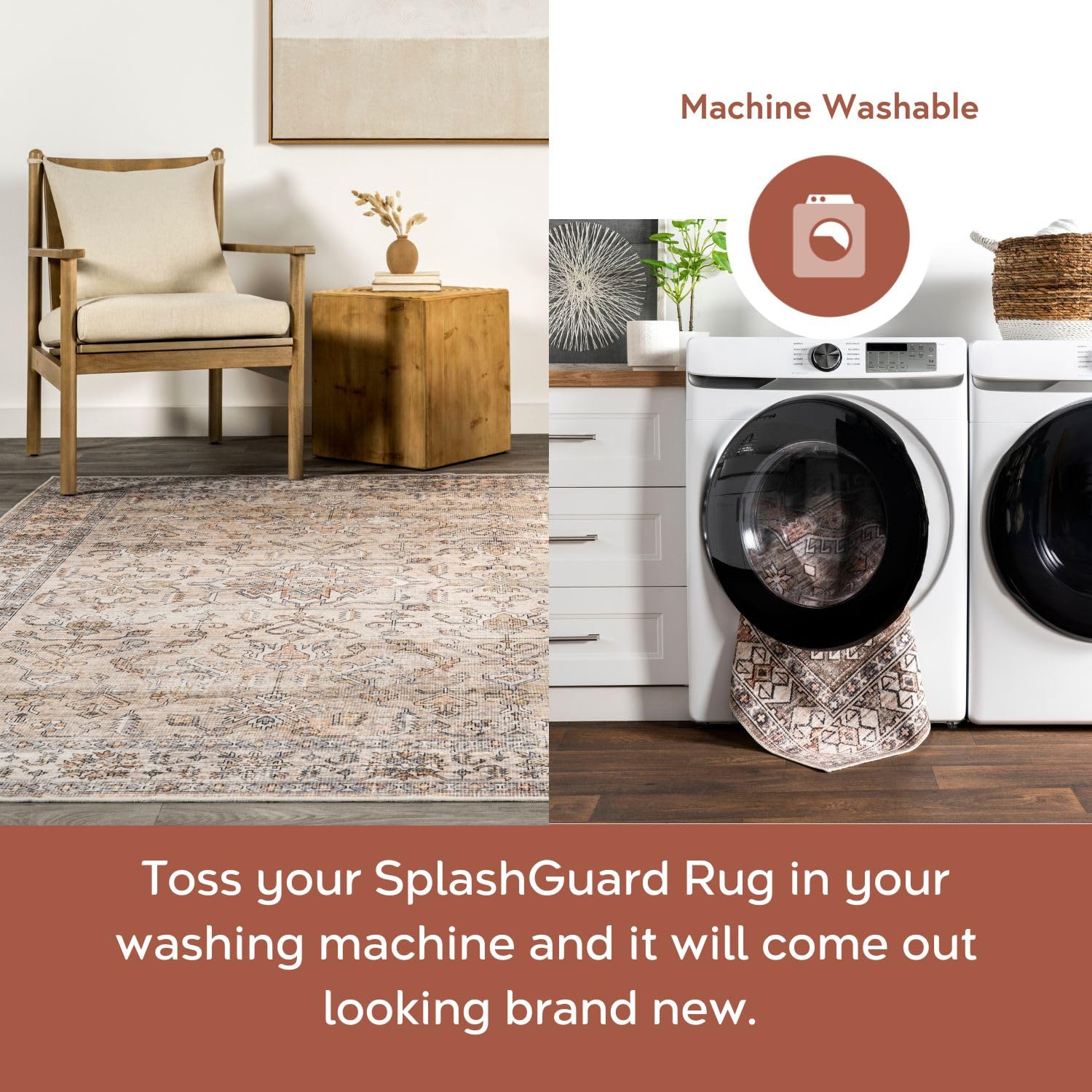 - Machine Washable for Easy Care: Maintaining this rug is a breeze with regular vacuuming and spot cleaning to preserve its beauty. For tougher stains, just toss your rug in the washing machine on a gentle cycle with cold water. We recommend line drying or using the air-only drying cycle without heat.