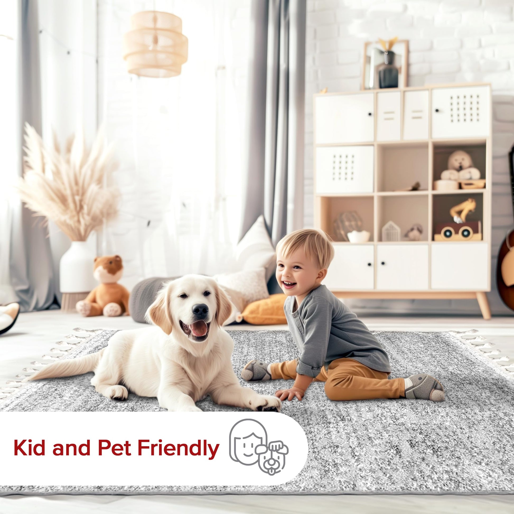- Kid and Pet-Friendly Rug: Worried about spills or messes? With this synthetic fiber design, this area rug is engineered to withstand the demands of a busy household from kids to pets, giving you peace of mind letting you relax and enjoy your new rug.