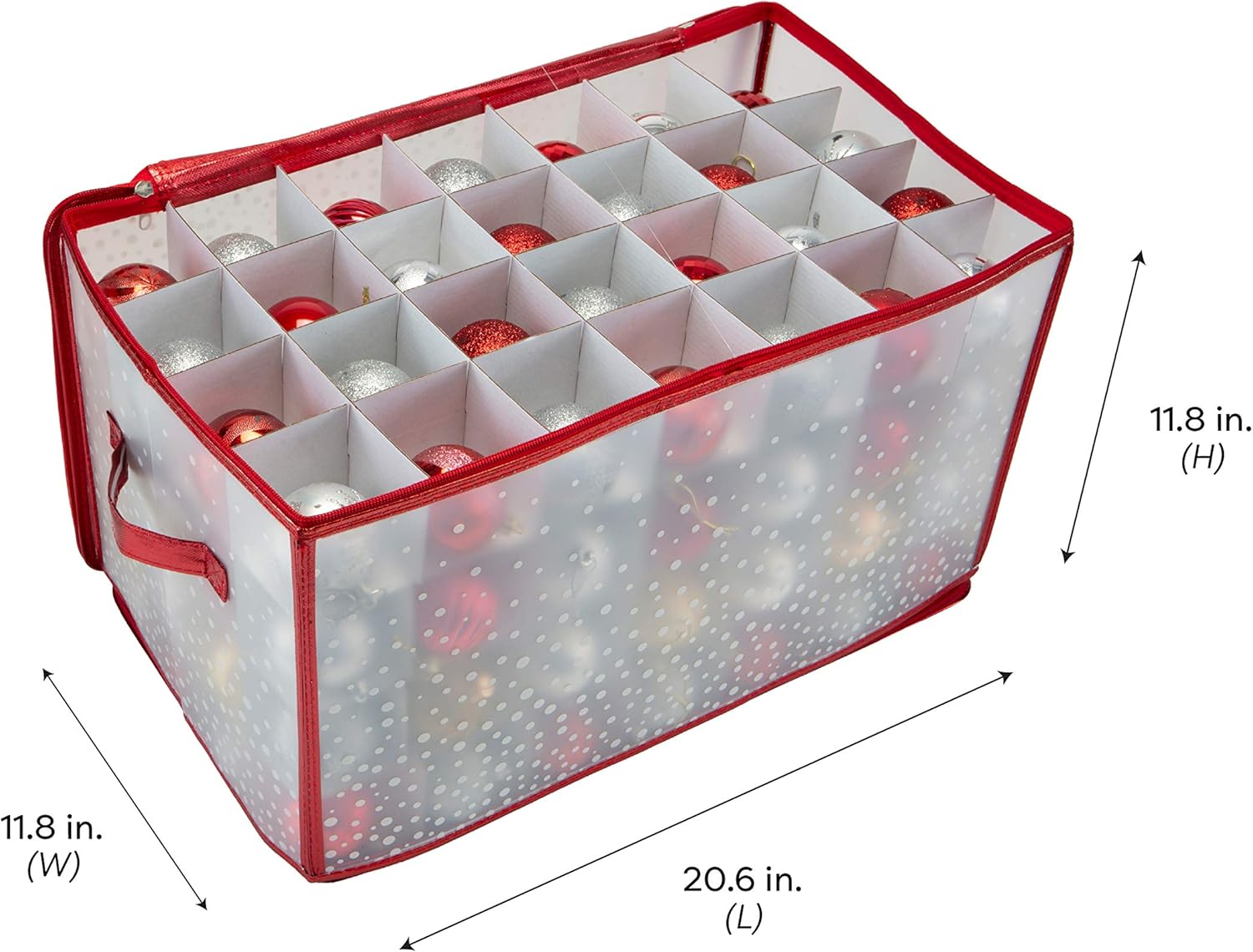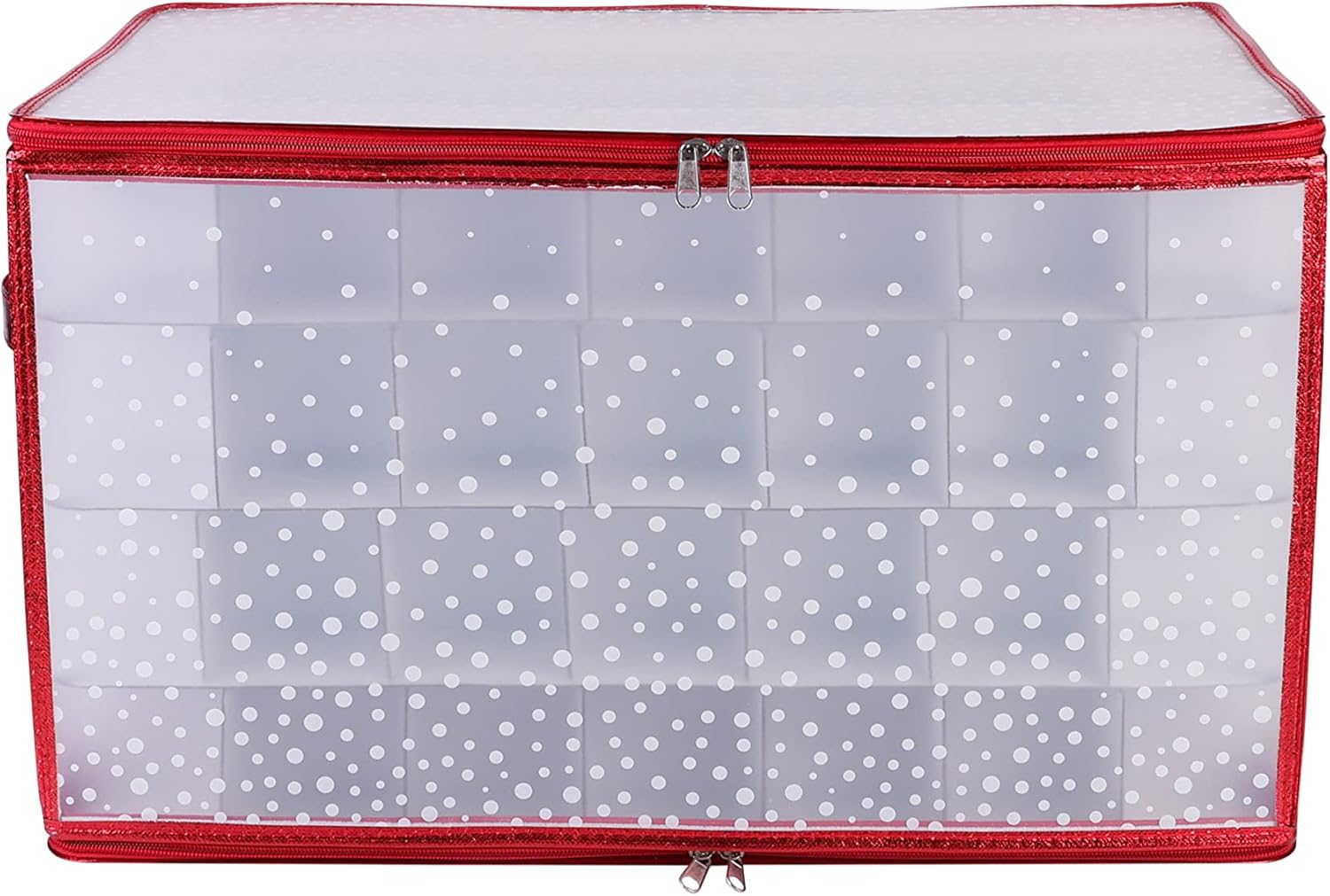 Ornament Storage Organizer for 112 Ornaments | Zipper Closure | Space-Saving Red Design