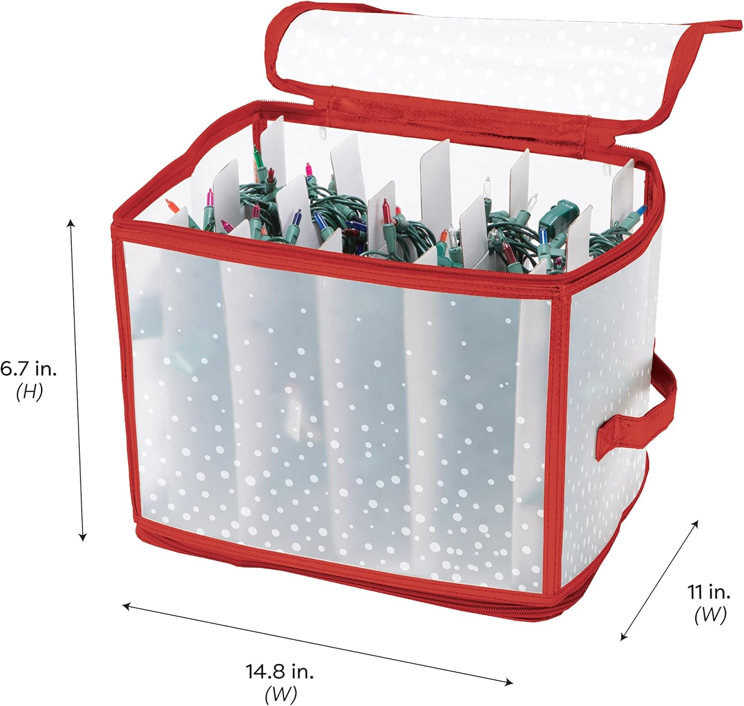 - <b>ORNAMENT ORGANIZER:</b> Coordinate all of your holiday storage ornaments, designed to safeguard your decorations. The attached carrying handles in christmas lights organizer have been reinforced to ensure durability and for easy carry."