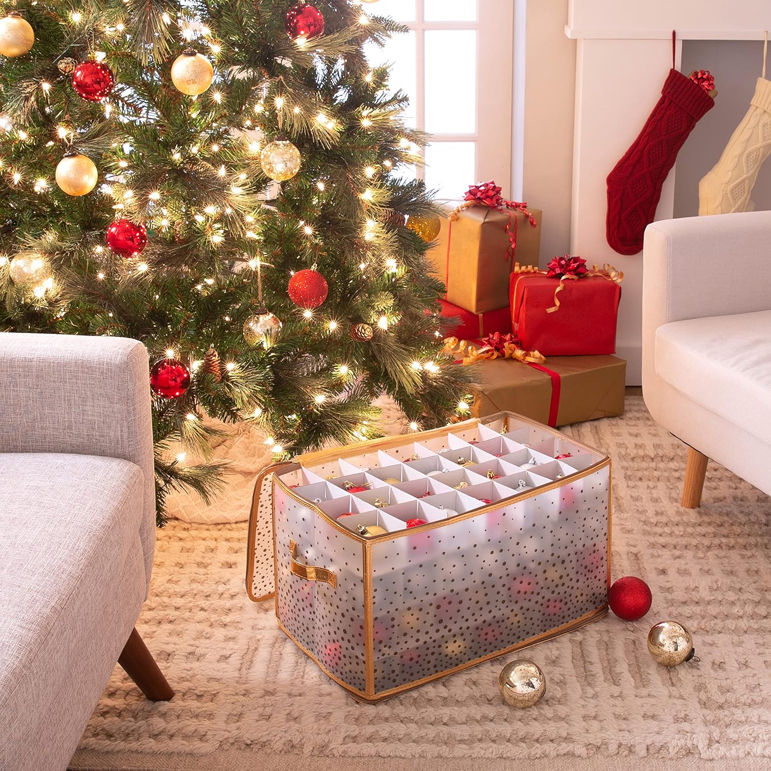 - <b>112 COUNT:</b> The light storage box by simplify offers you 112 count supporting 2.25 inch balls to easily store the christmas storage stuffs in this storage compartment for ornaments. Supportive card board storage divider helps protect your ornaments.